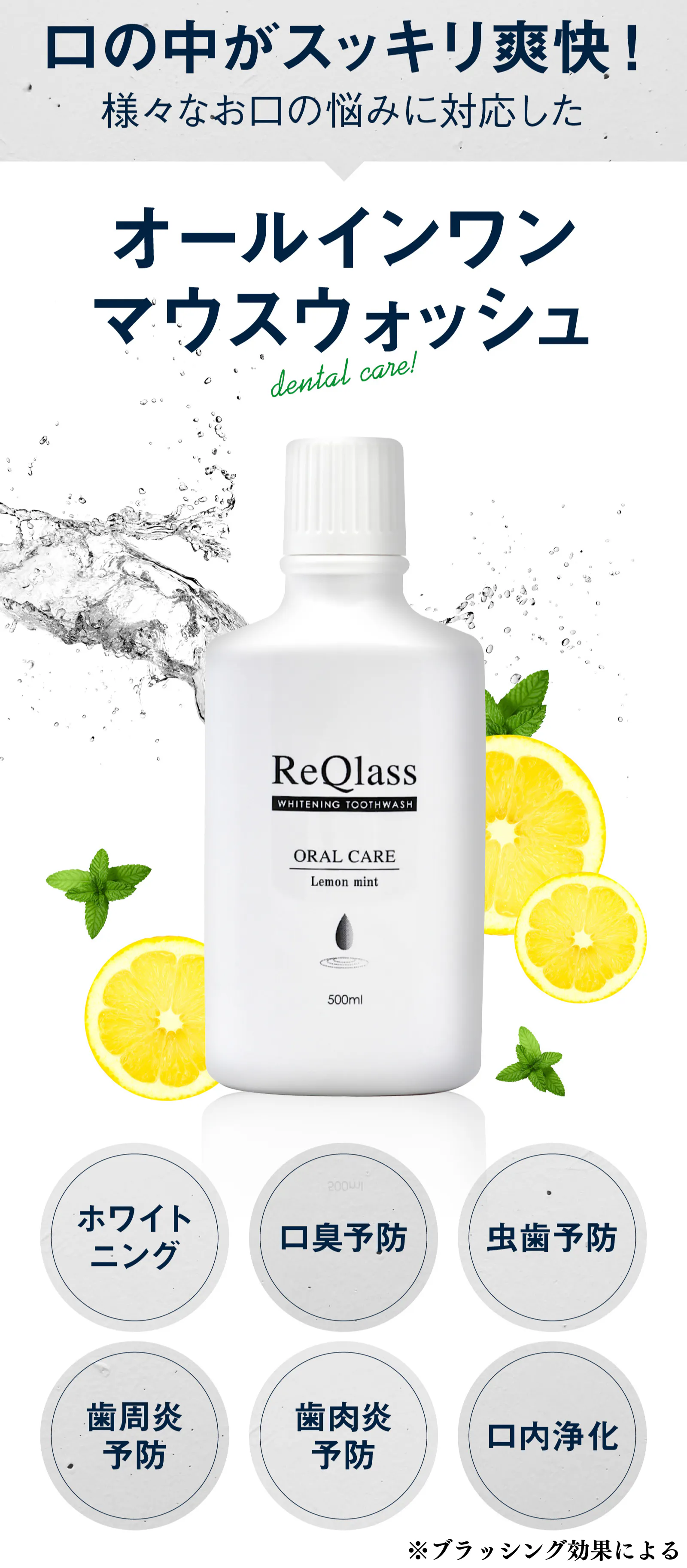 マウスウォッシュは液体だからこそ、ブラッシングだけではなかなかケアしにくい『歯茎・舌・歯と歯の間』にも行きわたり、健康的な口内環境に導いてくれます。