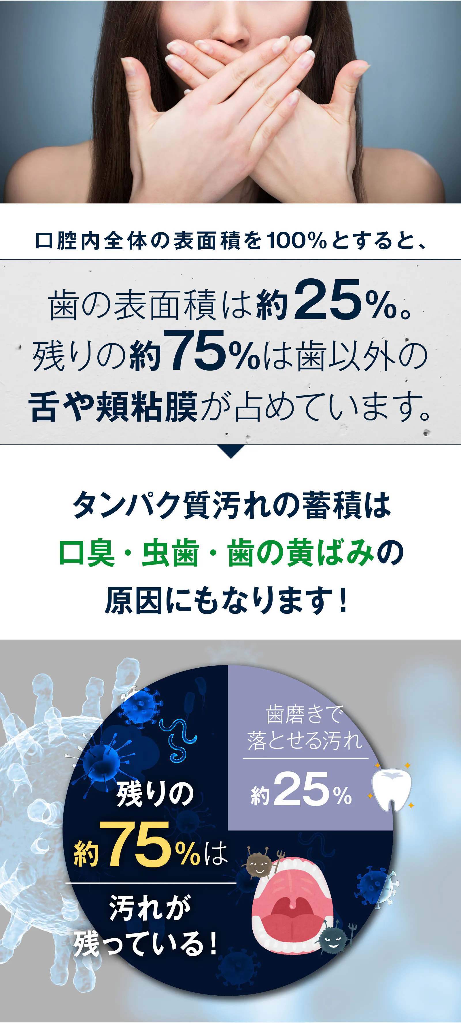 虫歯・口臭源因となる細菌元に含まれているタンパク質があります。