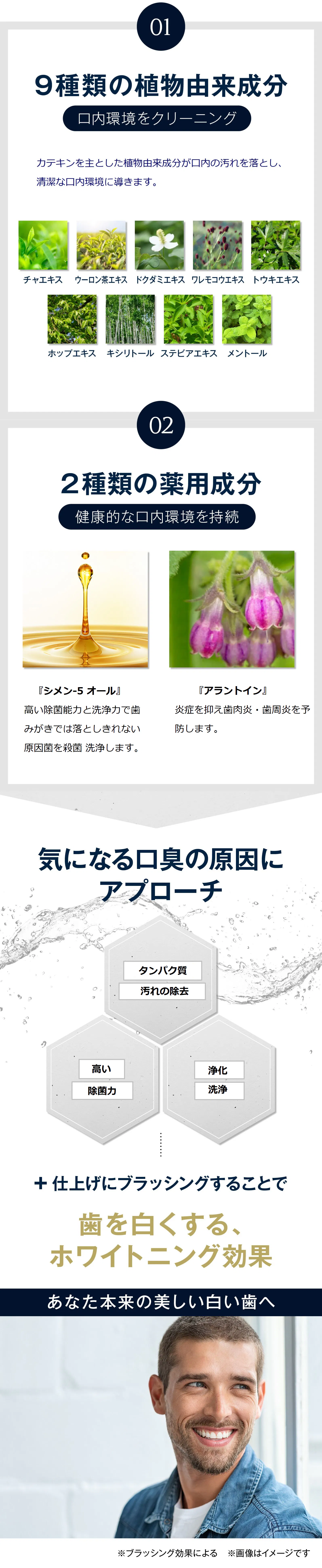 オールインワンマウスウォッシュに含まれている配合成分によって長く健康的な口内環境を目指します。