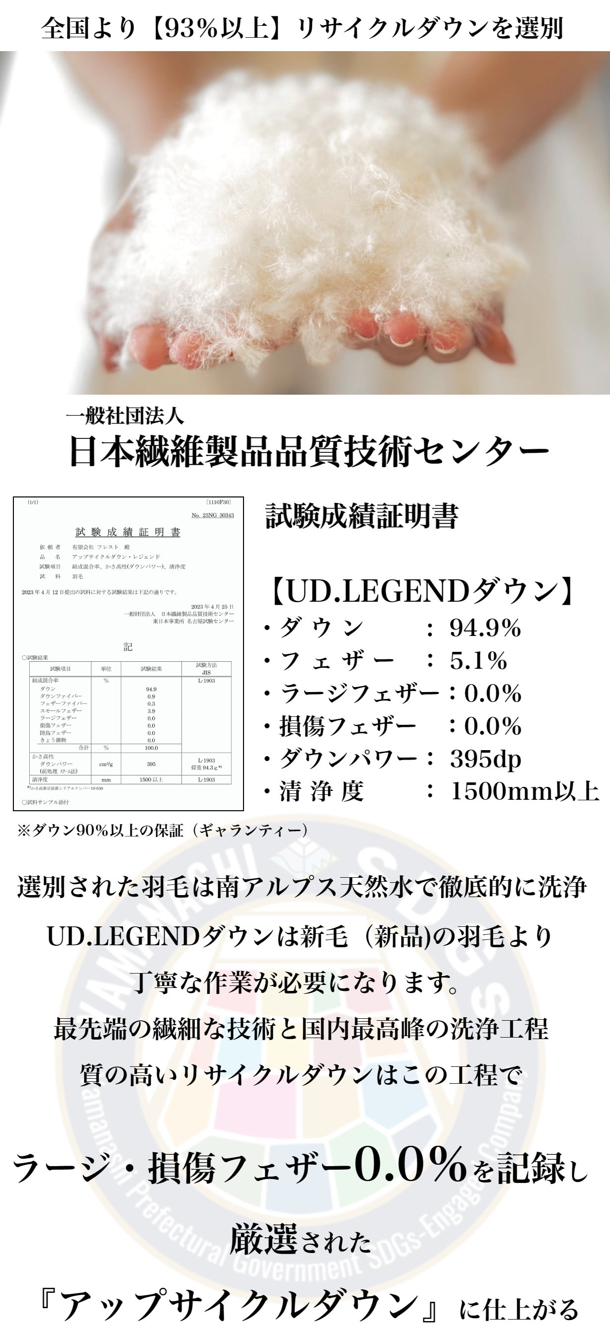 日本製:国内リサイクルダウン・日本製生地・国内製造