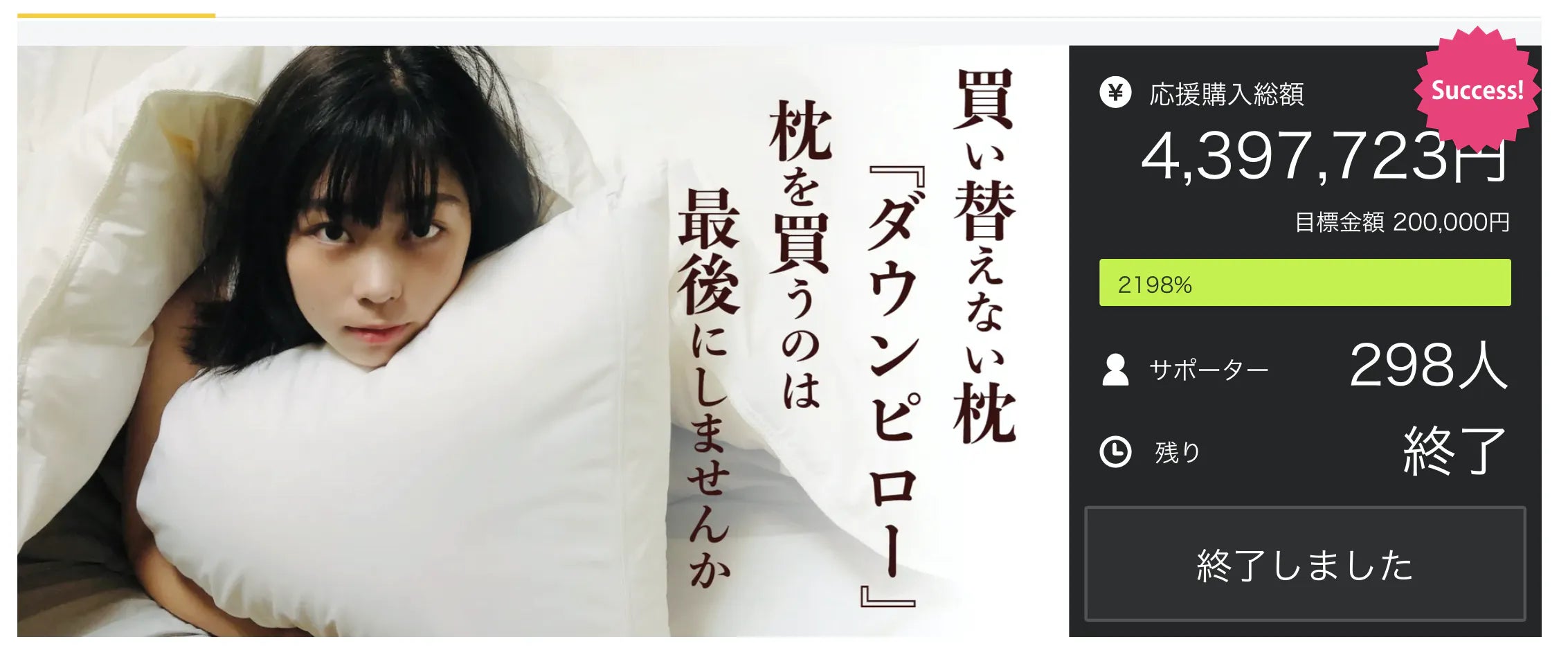 ※弊社クラファン『ダウンピロー』販売累計1000万越え!