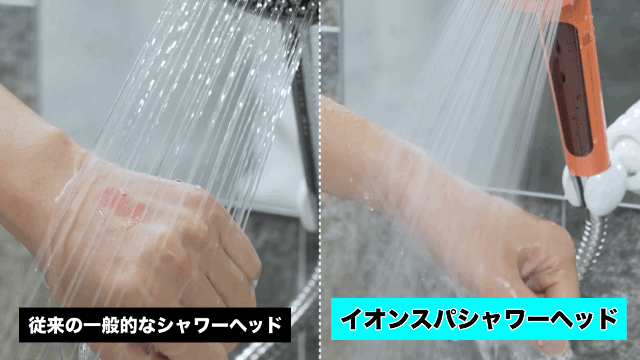 イオンスパのシャワー水は非常にきめ細かく、高い洗浄力を持っています。