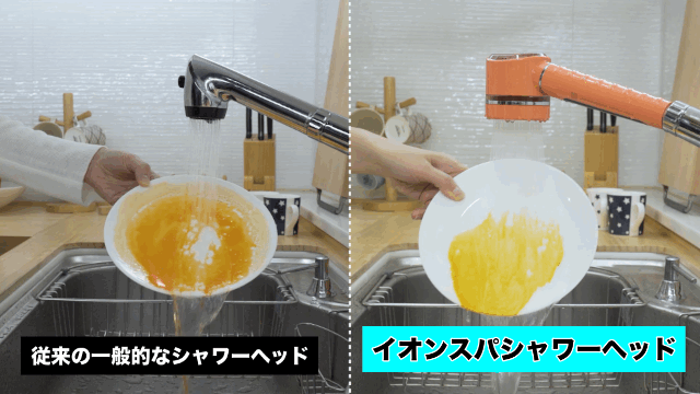 これらの構造により驚くほど軟らかで高い洗浄力の水を実現しました。イオンスパの高い洗浄力には油汚れを落としやすくする効果が期待できます。