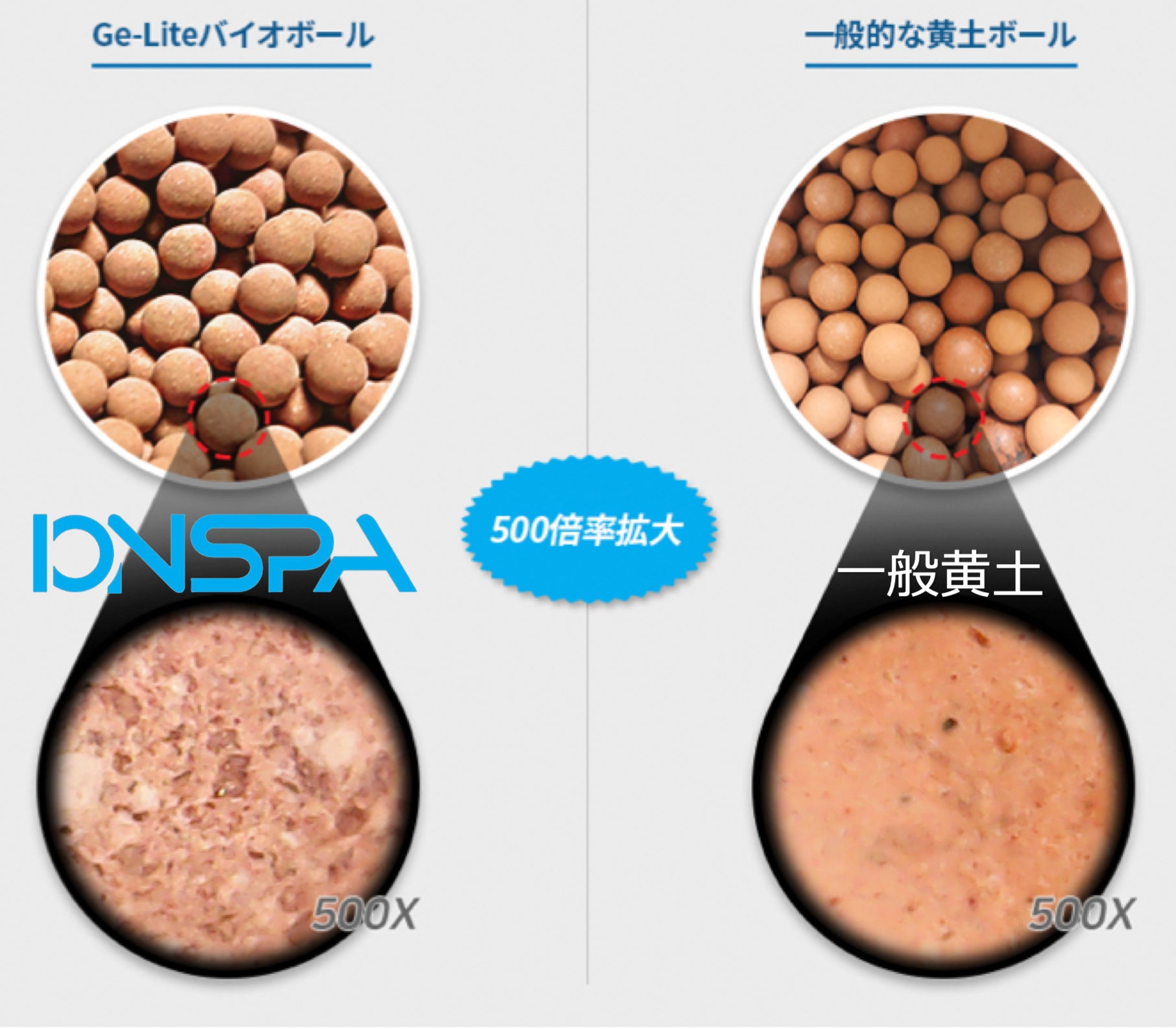 イオンスパのフィルターに使われている天然ポゾランボールの高級ゲルライトは500倍に拡大しても火山石結晶がそのまま見えるほどきめ細かく、高いフィルター能力が期待できる天然素材です。