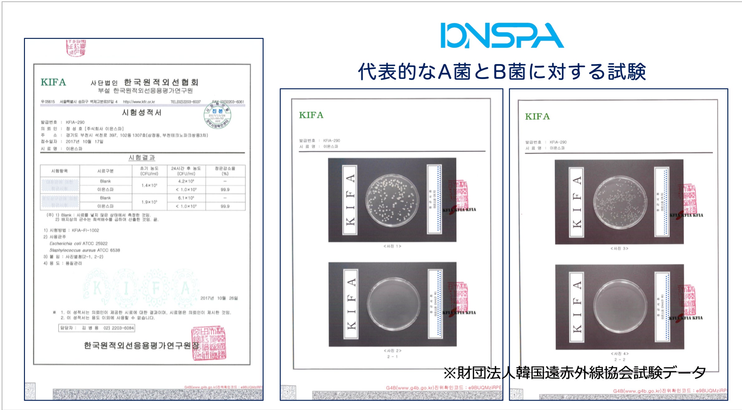 下記の試験からイオンスパシャワーヘッドを通したシャワー水で、日常的な菌を培養した結果、菌の濃度が減少し、増殖が抑制されるのが分かりました。