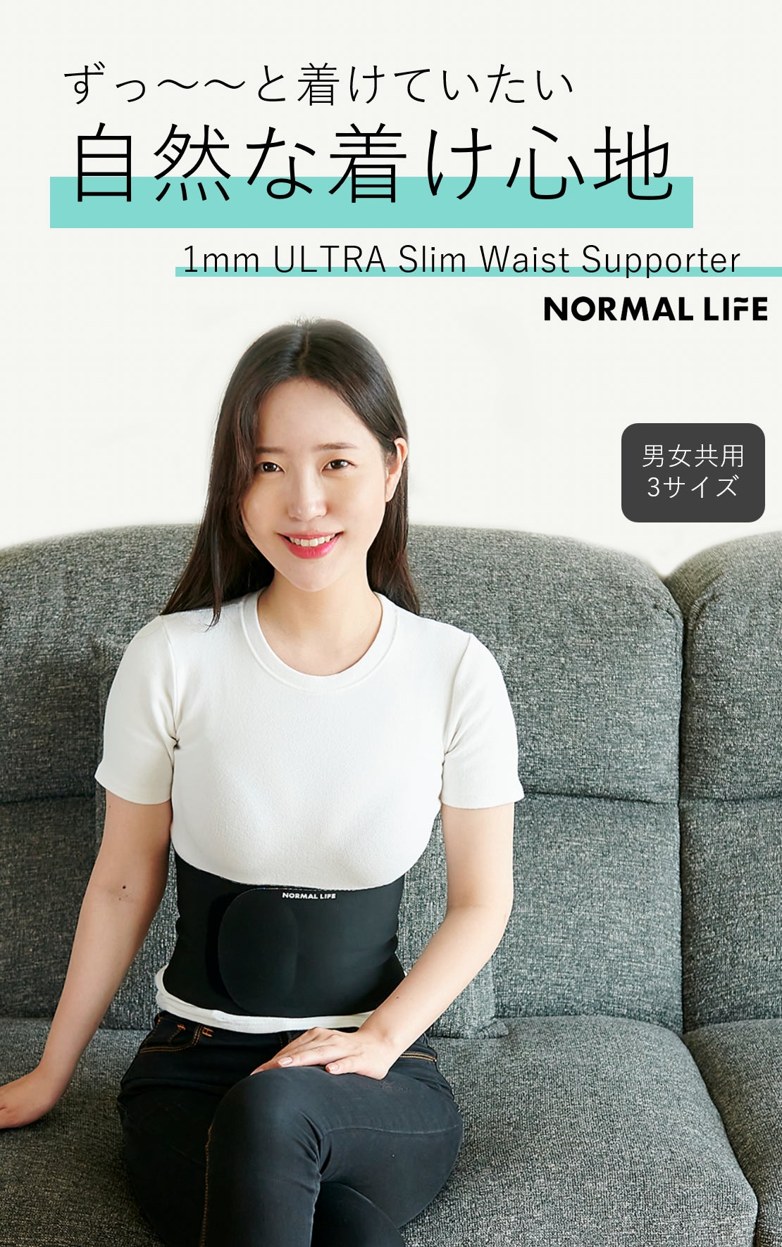 「暑い夏も快適!しっかり固定&自然な着け心地。インナー感覚の極薄1㎜腰サポーター!」