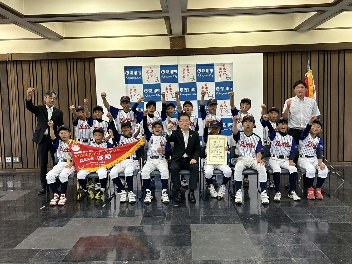 深川市役所へ表敬訪問し、マクドナルドトーナメント南北海道大会の優勝を報告しました。