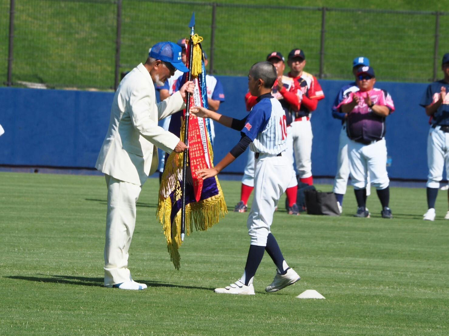 この日は開会式のみですが、我らが菊地キャプテンが堂々とした姿で優勝旗を返還いたしました。