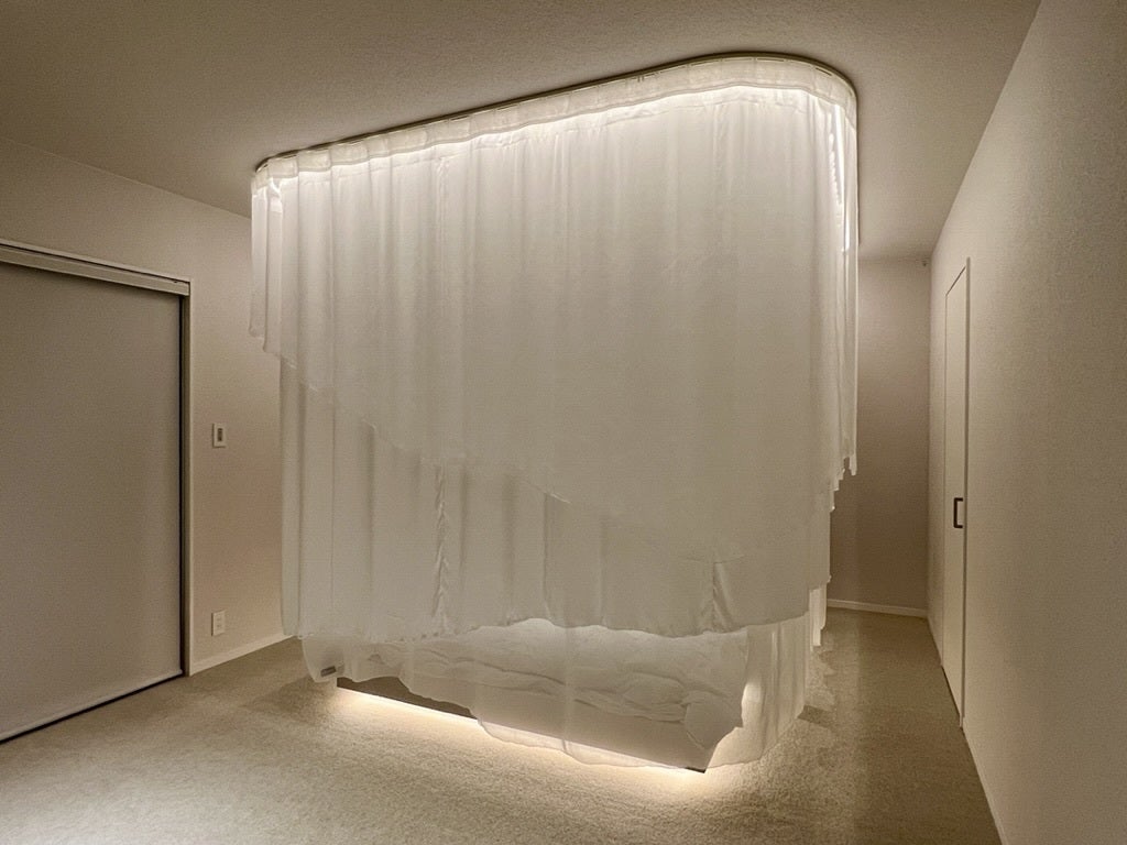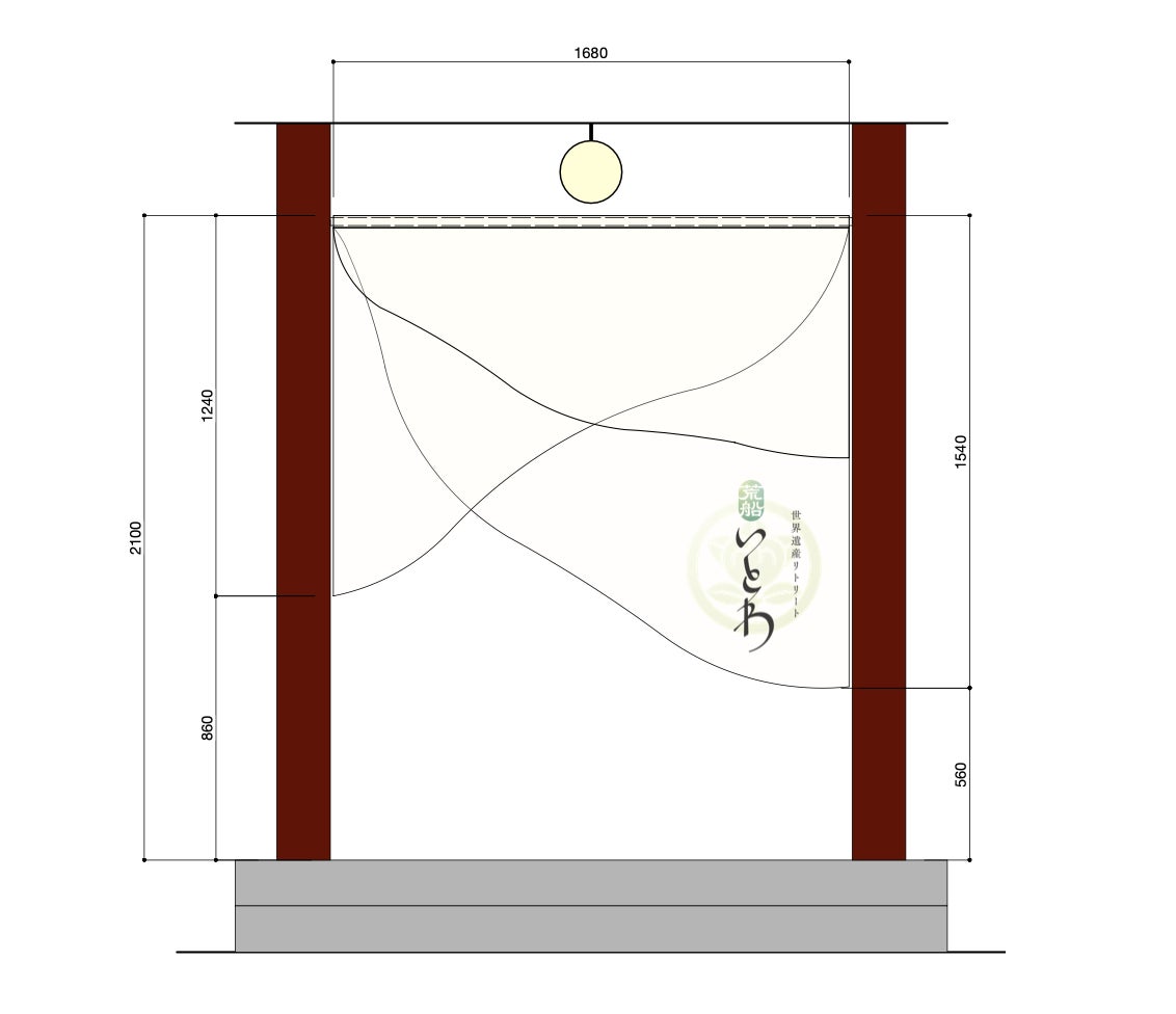 (実はこの曲線の暖簾を作れる業者さんを探すのが大変でした。10社以上問い合わせしてくれたデザイナーさんに感謝です。)