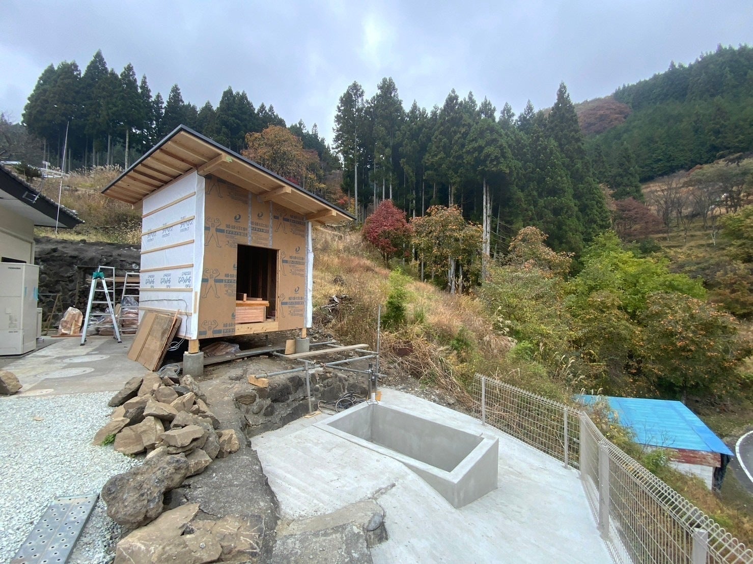 後ろには世界遺産、サウナを出れば湧水かけ流しの水風呂、ありのままの原風景での外気浴。