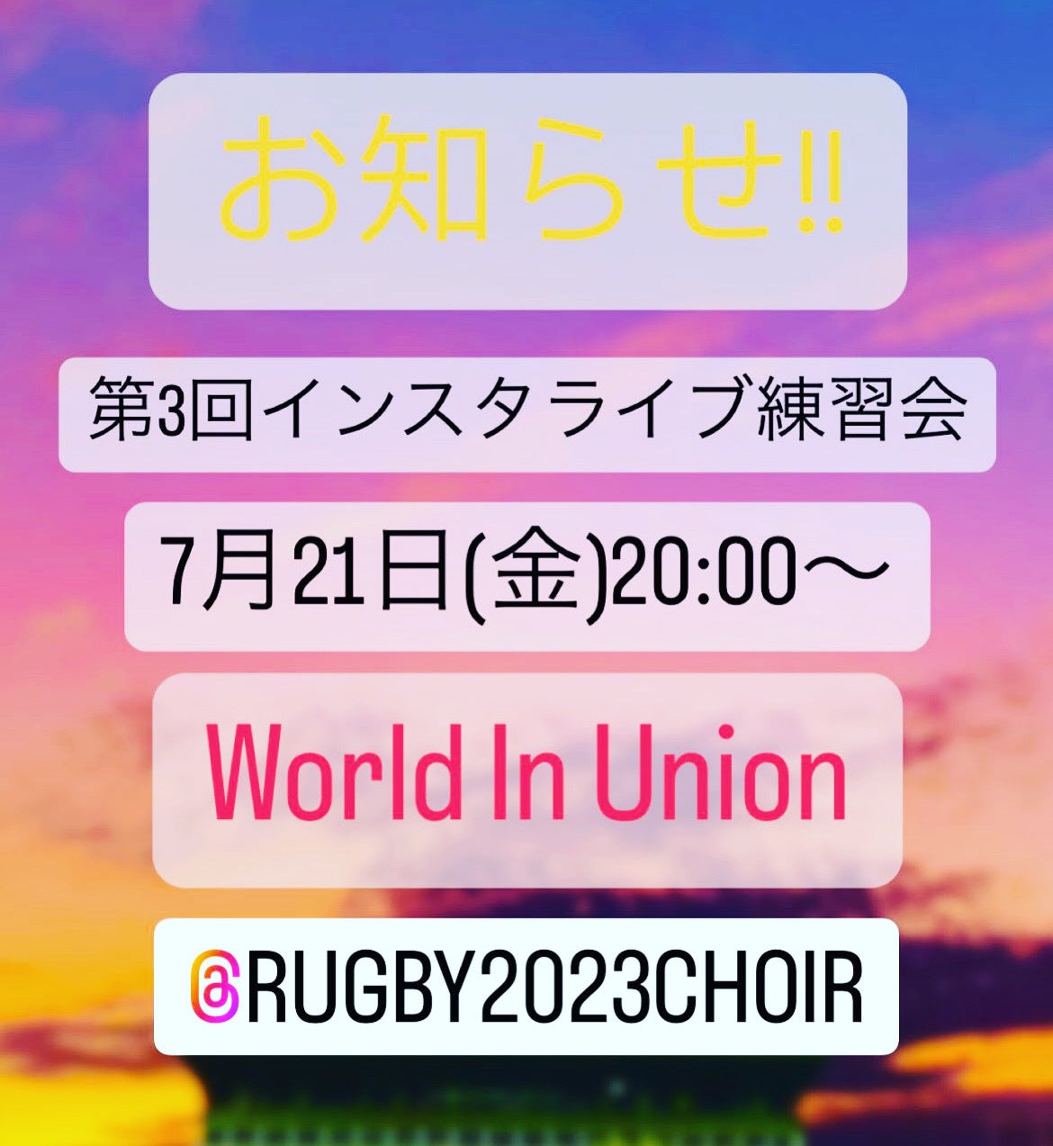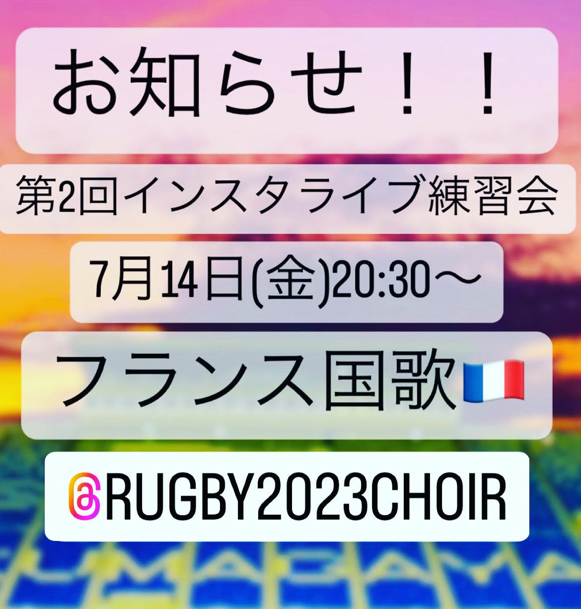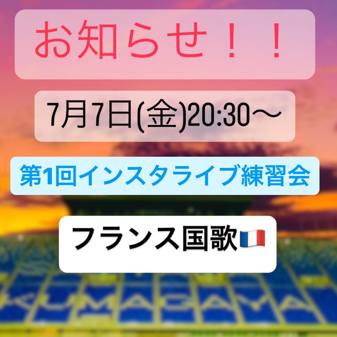 第2回インスタライブ練習会を行いました!今回も「フランス国歌」を練習しました!次回第3回インスタライブ練習会「World In Union」を練習します!7月21日(金)20:30〜