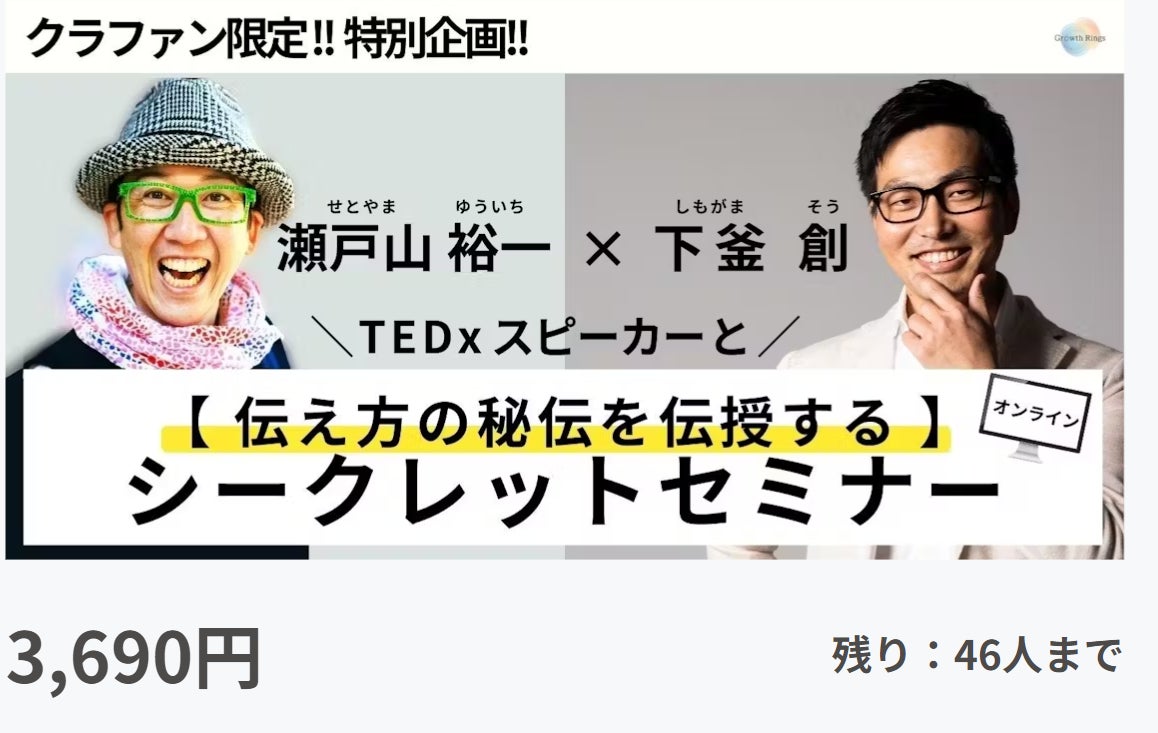 重要な秘伝のメソッドを下釜創とともに、クラファン限定で、大公開します。