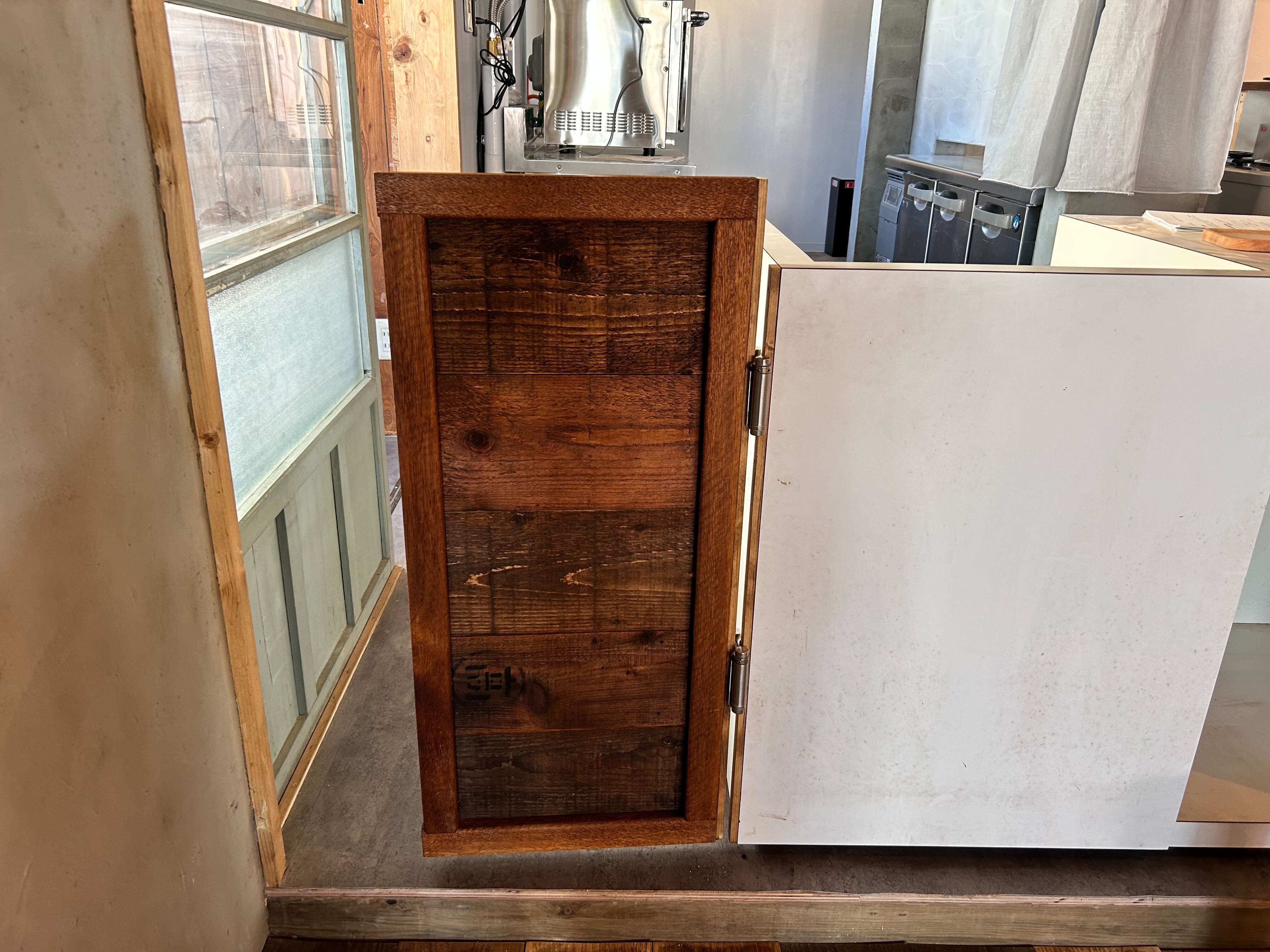 枠は元々昭和ガラスが張られていたガラス窓のもの