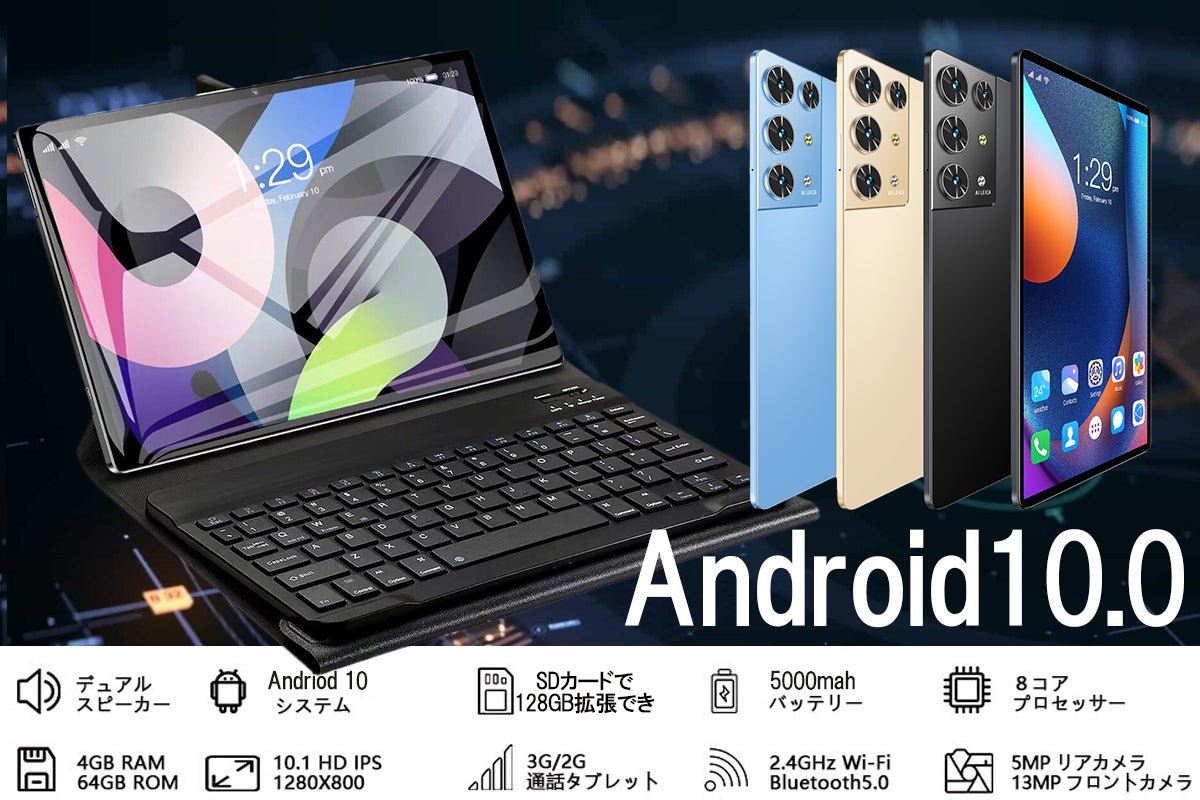 タブレットAndroid10.0+8コアCPU+WiFi 2.4G対応+Bluetooth 5.0 +5000mAhバッテリー