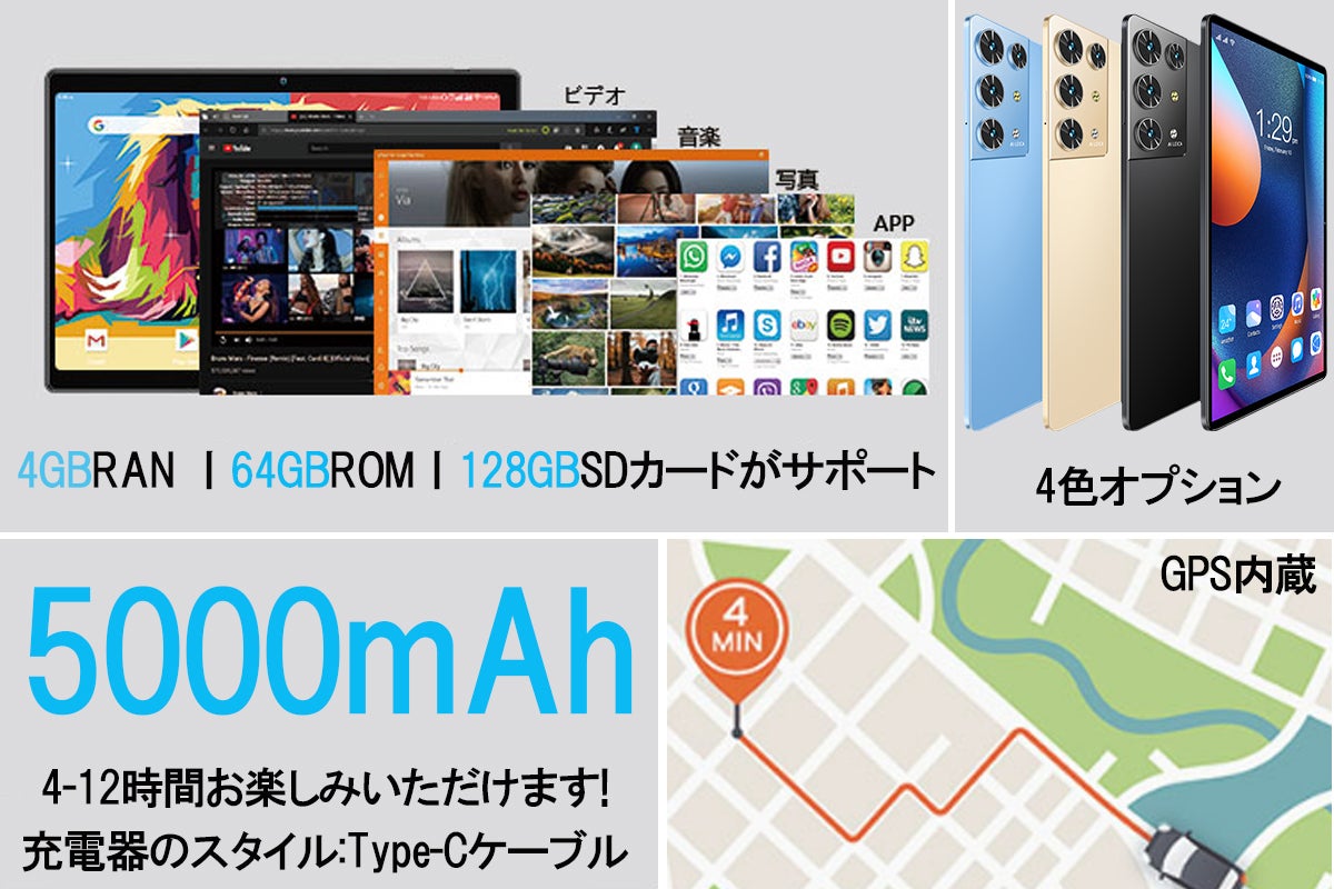 タブレット 4GB+64GB+128GB拡張: