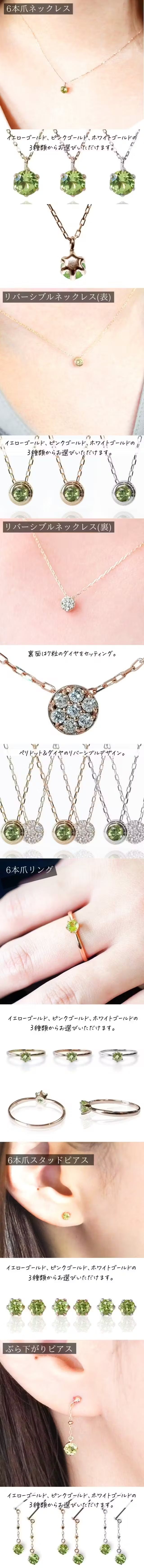 ペリドットは年代問わず人気の宝石で、重ね付けはもちろん、そのシンプルな 美しさがシーンを選びません。