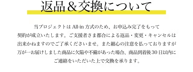 本文中に記載させていただいたスケジュールは、あくまでプロジェクト公開時点の予定です。支援の性質上、配送遅延のおそれがございます。
