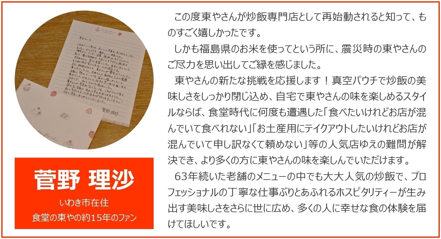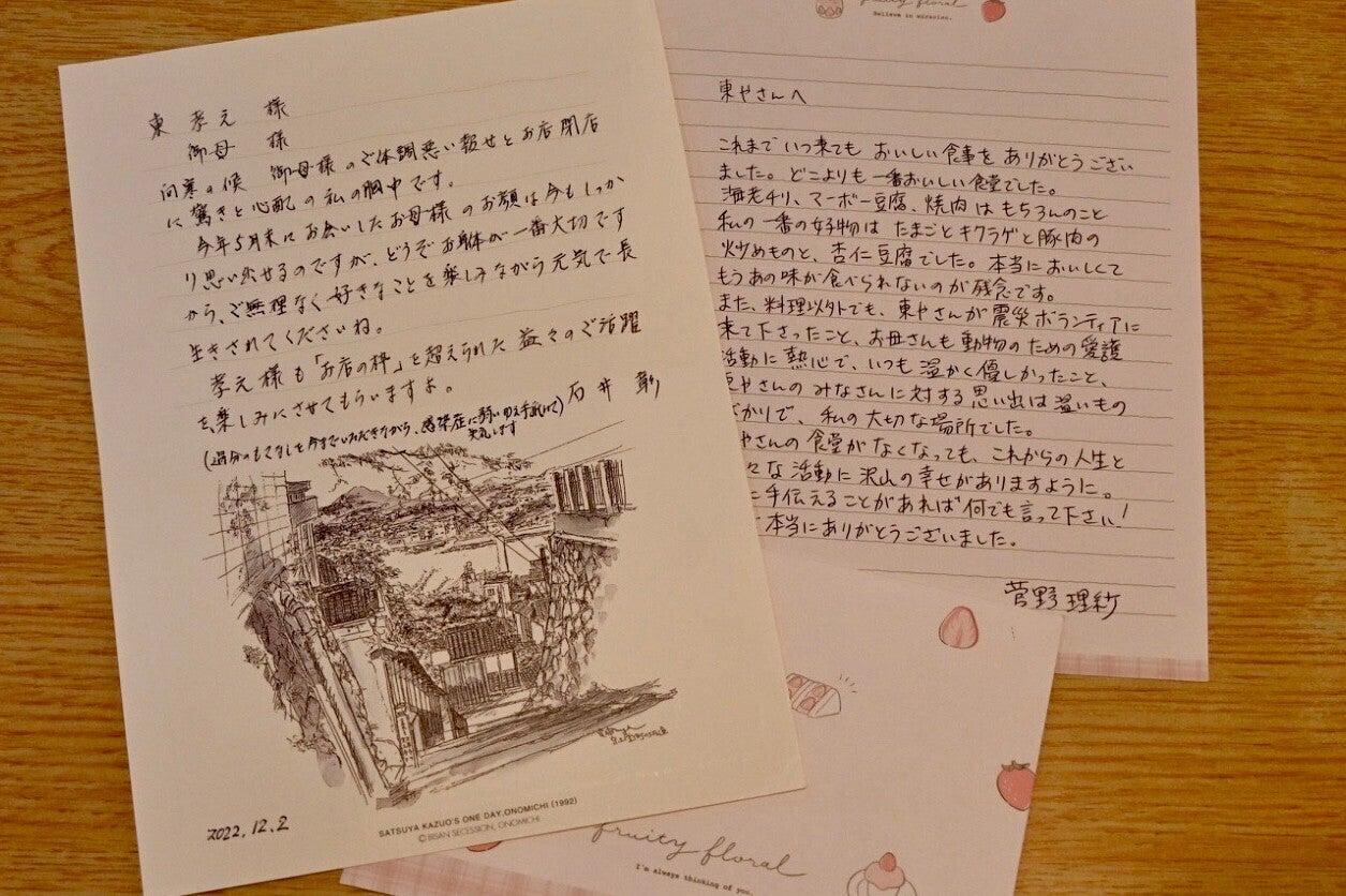 閉店する旨のお知らせを出した後、特に、今まで食べに来てくださっていたお客様や、東日本大震災の際にボランティアでいわきに来てくださり当店にも足を運んでくださったお客様から、閉店を惜しむお言葉や手紙をたくさん頂きました。