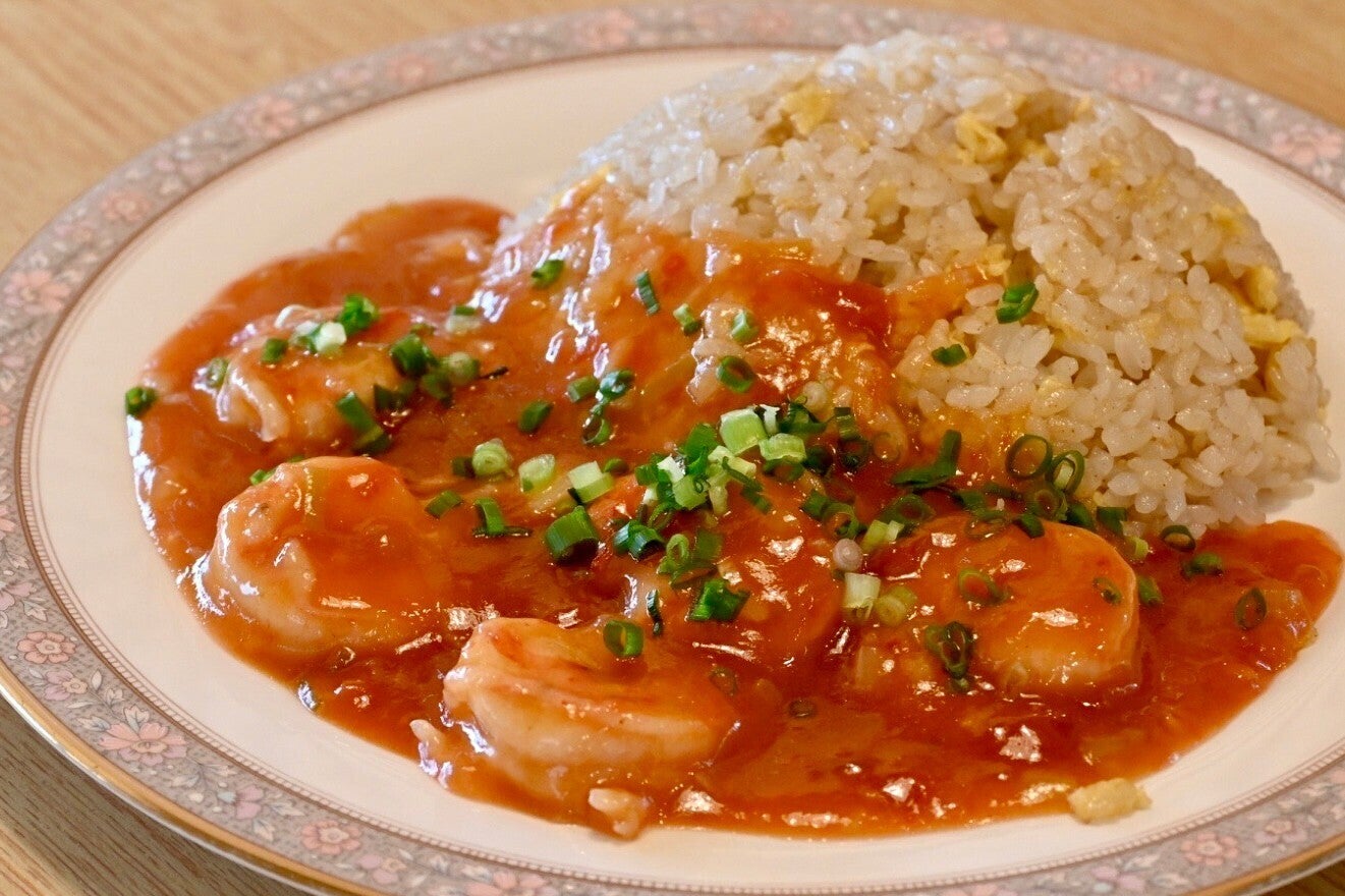 そのなかで、一番作ってみたいと思ったのが「爆旨えびちり炒飯 極」。漫画では、エビチリのチリソースにケチャップではなくトマトを使用。それをヒントに、トマトと海老の頭を使った特製チリソースを開発し、大ぶりのエビを使ってメニュー化したところ、いま、店の一番人気のメニューになってくれました。