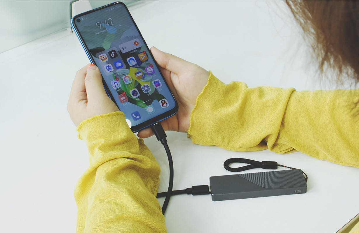 PCやスマホに保存したくないデータや動画などを「UltraDisk Plus」に入れておけば、いつでもどこでも簡単に取り出せます。(Type-Cインタフェースでの場合のみ利用可能です。)