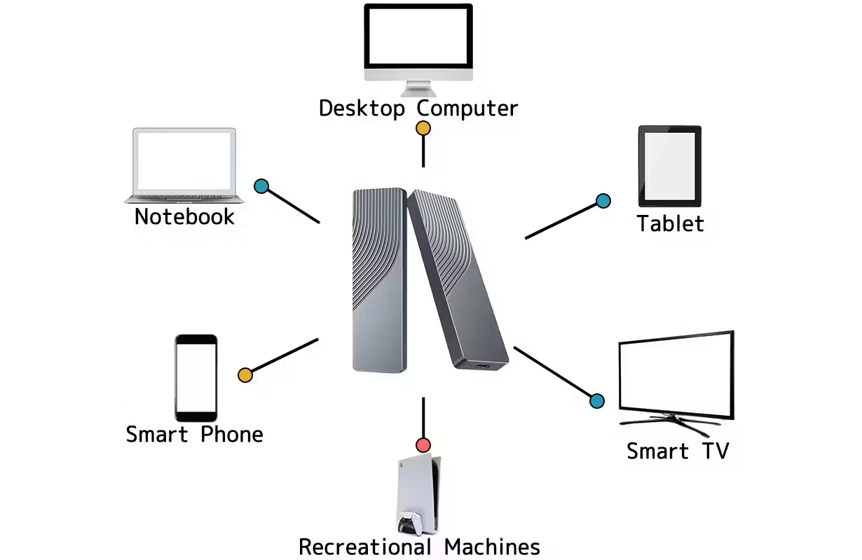 ハードディスクみたいに物理的にディスクが回転していませんので動作中でも静かで、リビングはもちろん寝室のような場所で使うのにも快適!