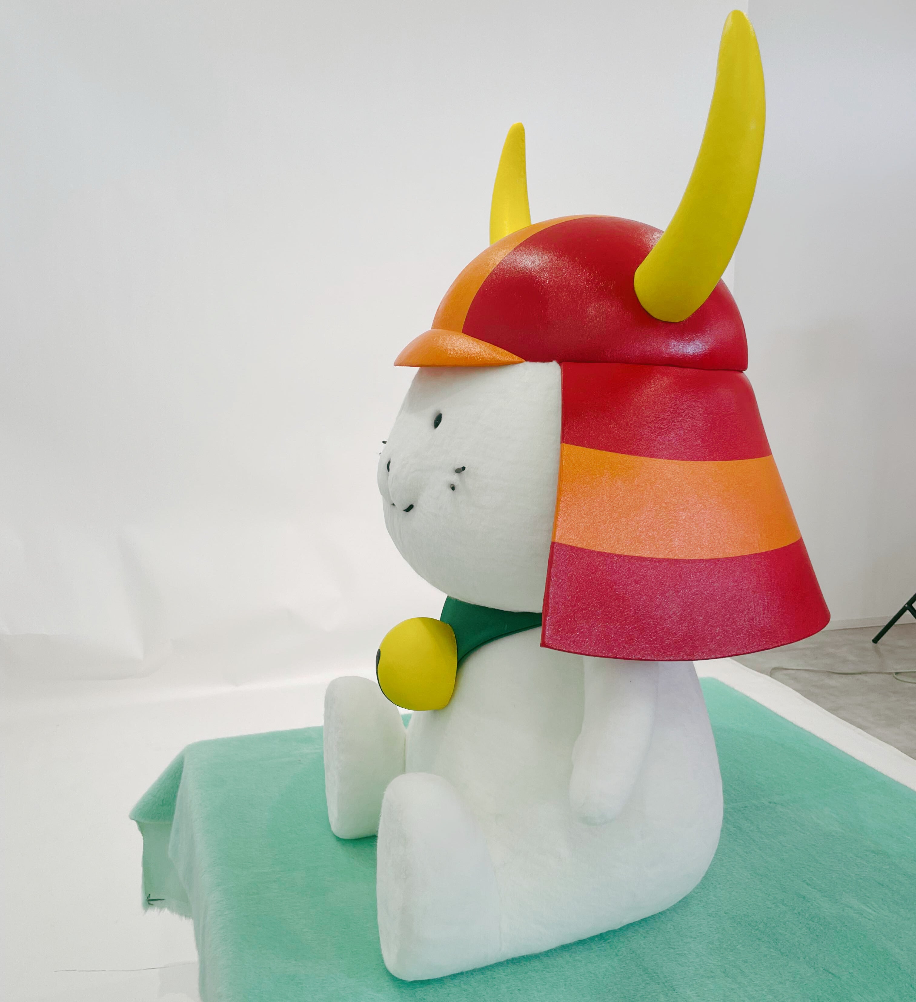 素材はボア生地、カブトはフェイクレザーを使い、限りなく実物に感じていただくための素材を使用します。