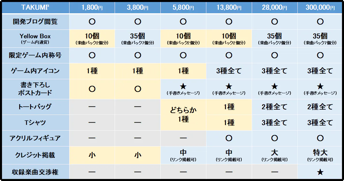 また、基本的に各プランで頂いた資金は、それぞれの音ゲーの発展の為に使用させていただきます。