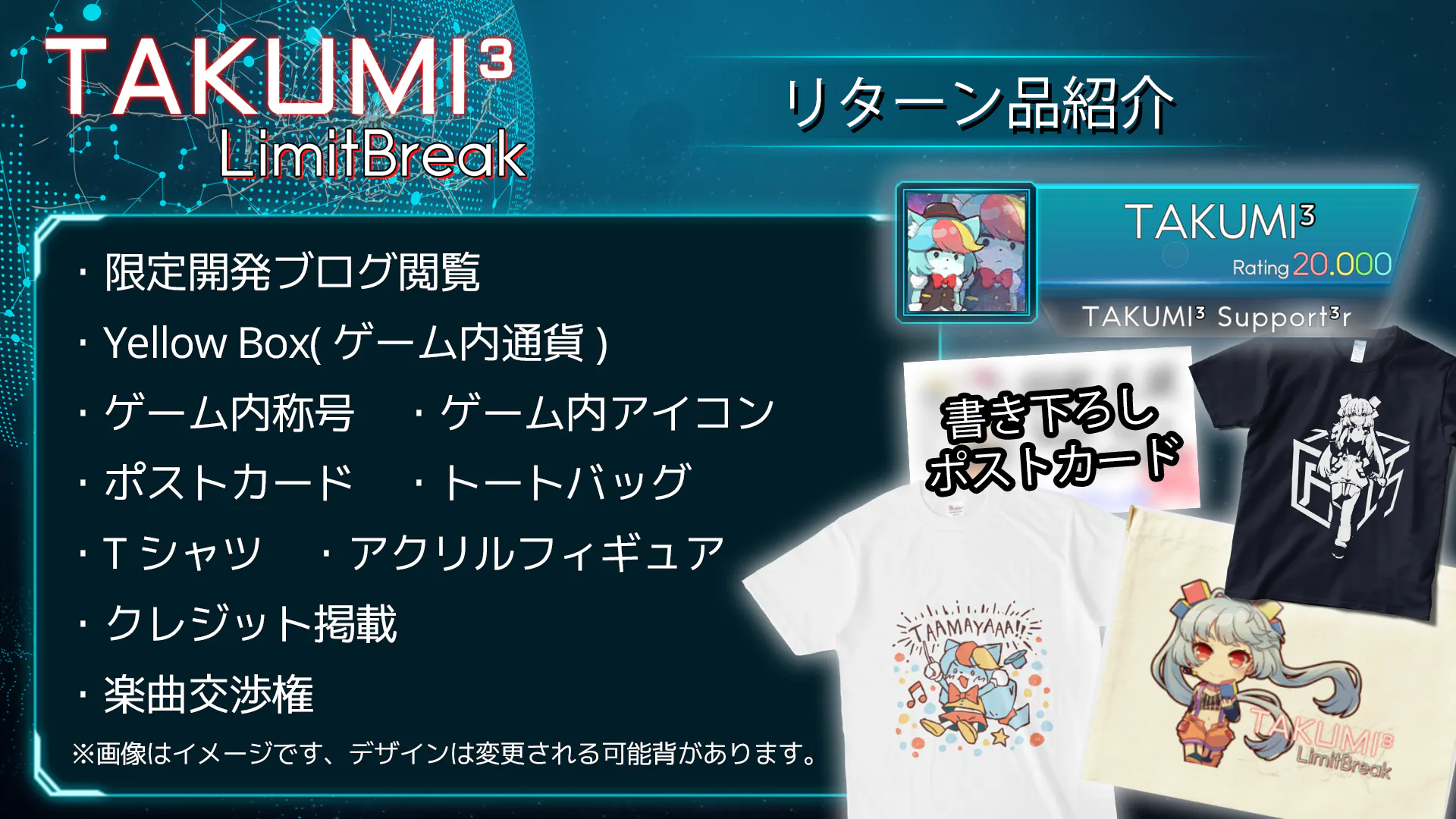 ・7月15日 TAKUMI³、ゲーム内リターン配布