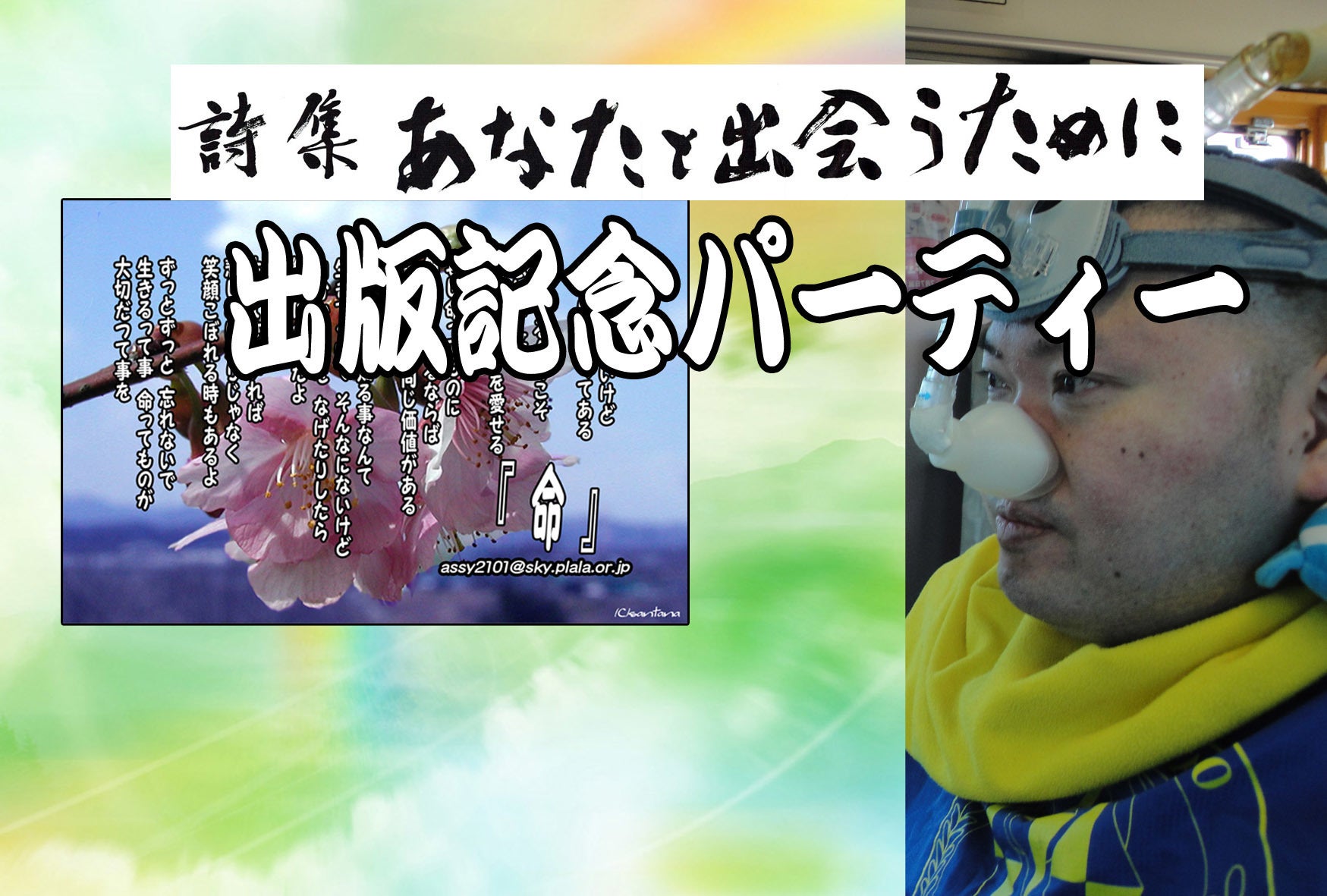 猛暑も落ち着き、秋の気配を感じる季節となりましたが皆様いかがお過ごしですか。 さて、この度、クラウドファンディングで皆様から暖かい支援を頂き、制作してきた詩集が10月26日に完成します。そこで支援して頂いた方、日頃よりお世話になっている方々に詩集のお披露目とお礼の気持ちを直接お伝えしたいという思いで出版記念パーティーを開催します。皆様をご招待したいところですが、会費制とさせて頂きます。お忙しいこととは思いますが、お時間があればぜひ参加してください。参加される場合、その場で詩集を購入できます。そして会費が高いためご祝儀は用意しないで大丈夫です。来て頂けるだけで十分です。お会いできることを楽しみにしています。よろしくお願いします。 日時 平成30年11月25日(日) 12:00~15:00 会費 4,500円(大人・高校生) 2,700円(中学生) 1,700円(小学生)小学生以下無料 ※ソフトドリンク・ノンアルコール付き ※アルコールは実費 ※当日キャンセルはキャンセル料がかかります ※宿泊を希望される方は 8,000円(朝食付き)で宿泊可能 場所 ホテル芙蓉倶楽部 大分県別府市堀田7-1 0977-26-7711 http://fuyouclub.jp/ 〆切 10月6日(土)まで 連絡 090-9493-4890 assy2101@sky.plala.or.jp
