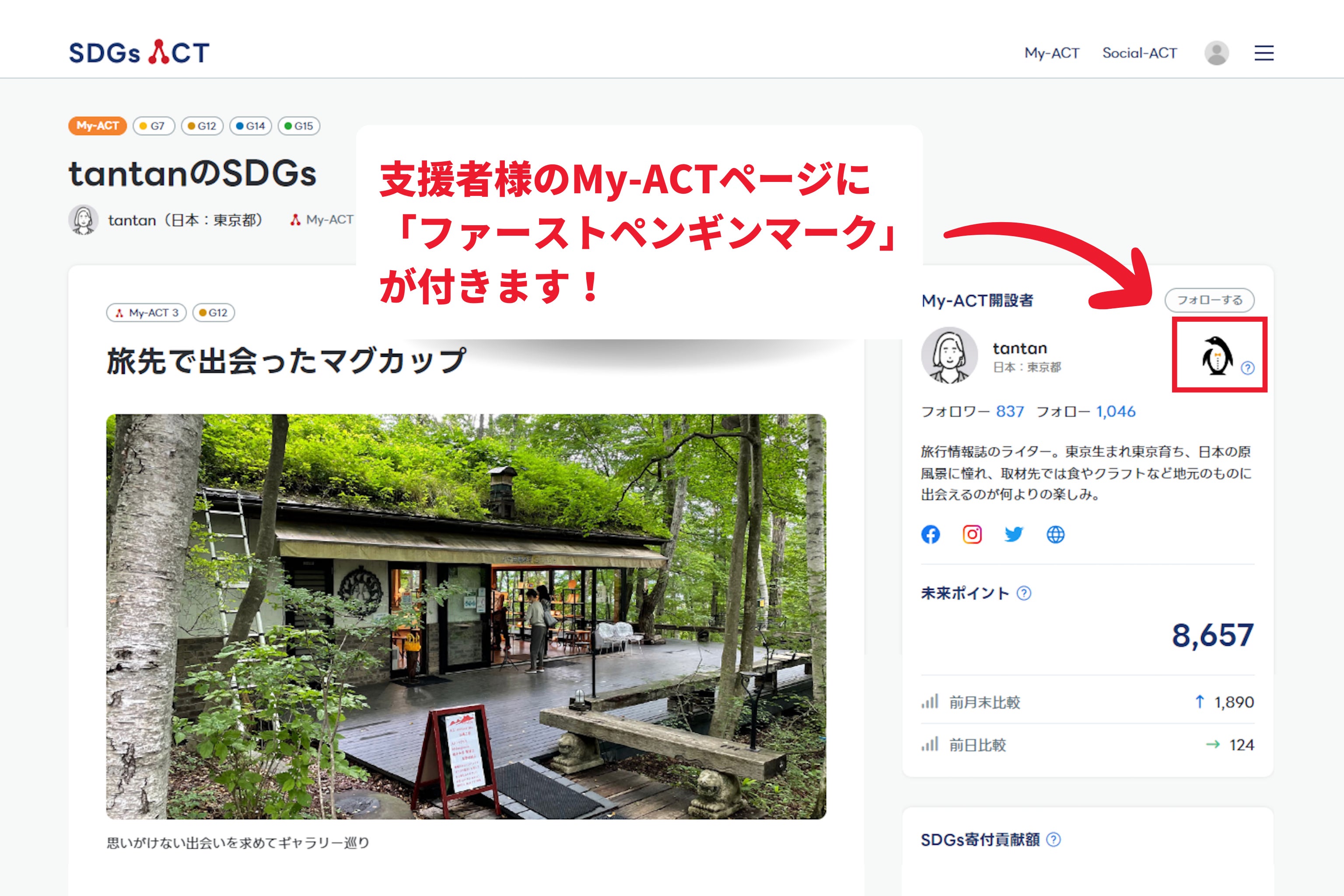 該当コースにご支援いただいた方のMy-ACTページには、支援者の証として「ファーストペンギンマーク」が付与されます。