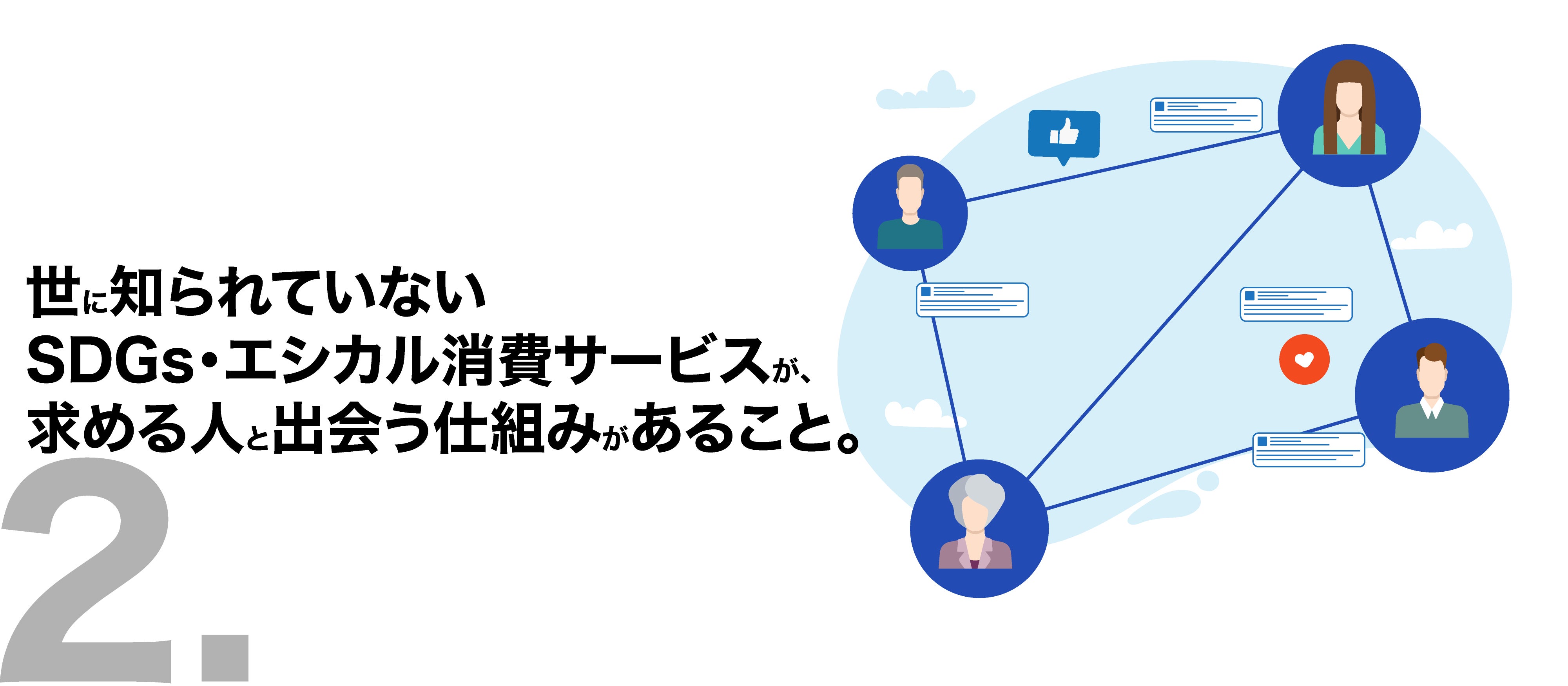 SDGs・エシカルなどに特化した商品・サービスを発信するために設計された企業用ページです。今まで埋もれていた中小企業の素晴らしいSDGs商品やサービスと、情報を求めている人がマッチングする仕掛けが用意されています。
