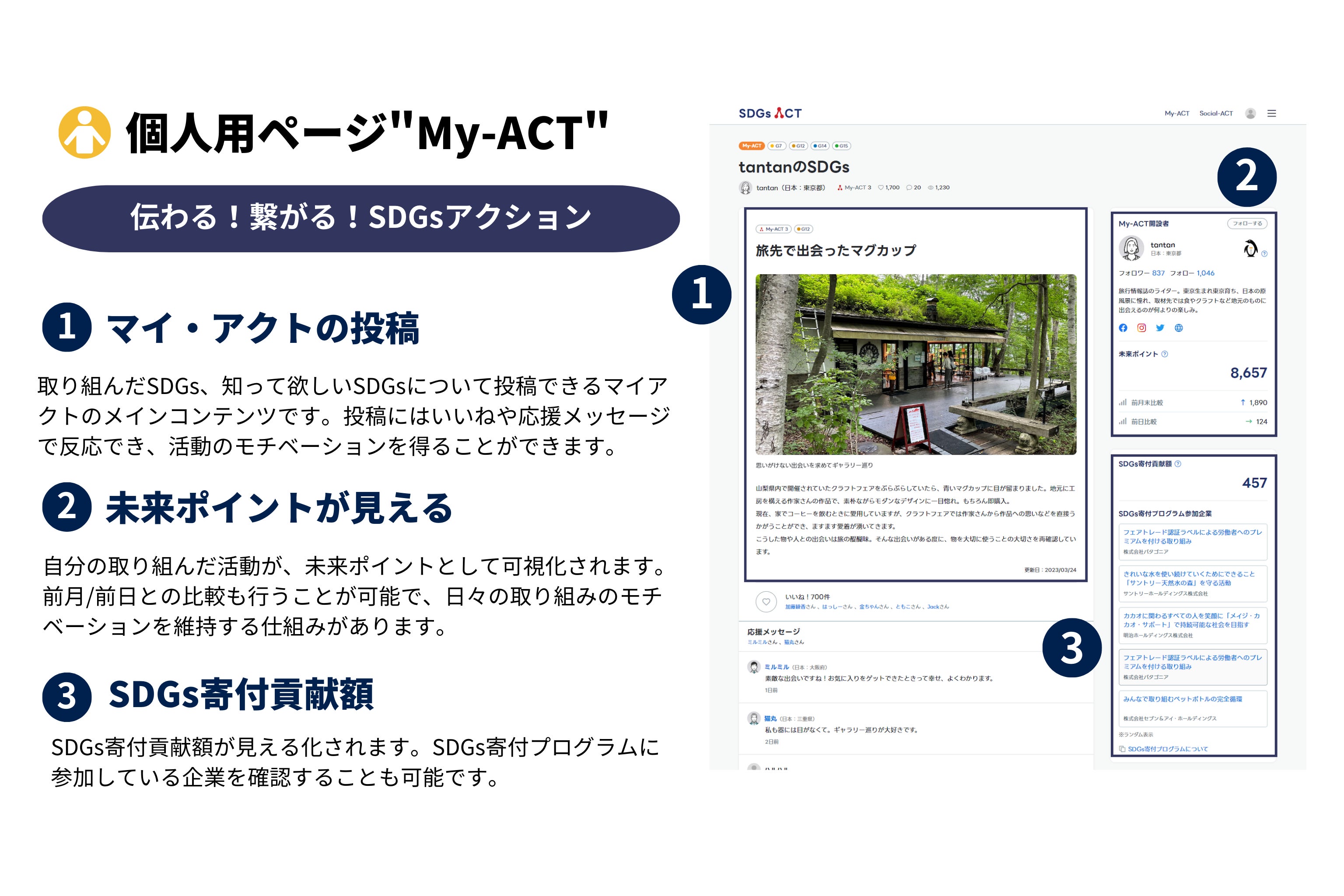 さらに今回、Z世代に向けた発信やSDGsの扱いについては、SDGsダイアリーなどのSDGsメディアを出版されている(株)COOONの原田さんに協力をいただき、My-ACTシステムの設計を大きくレベルアップさせました。