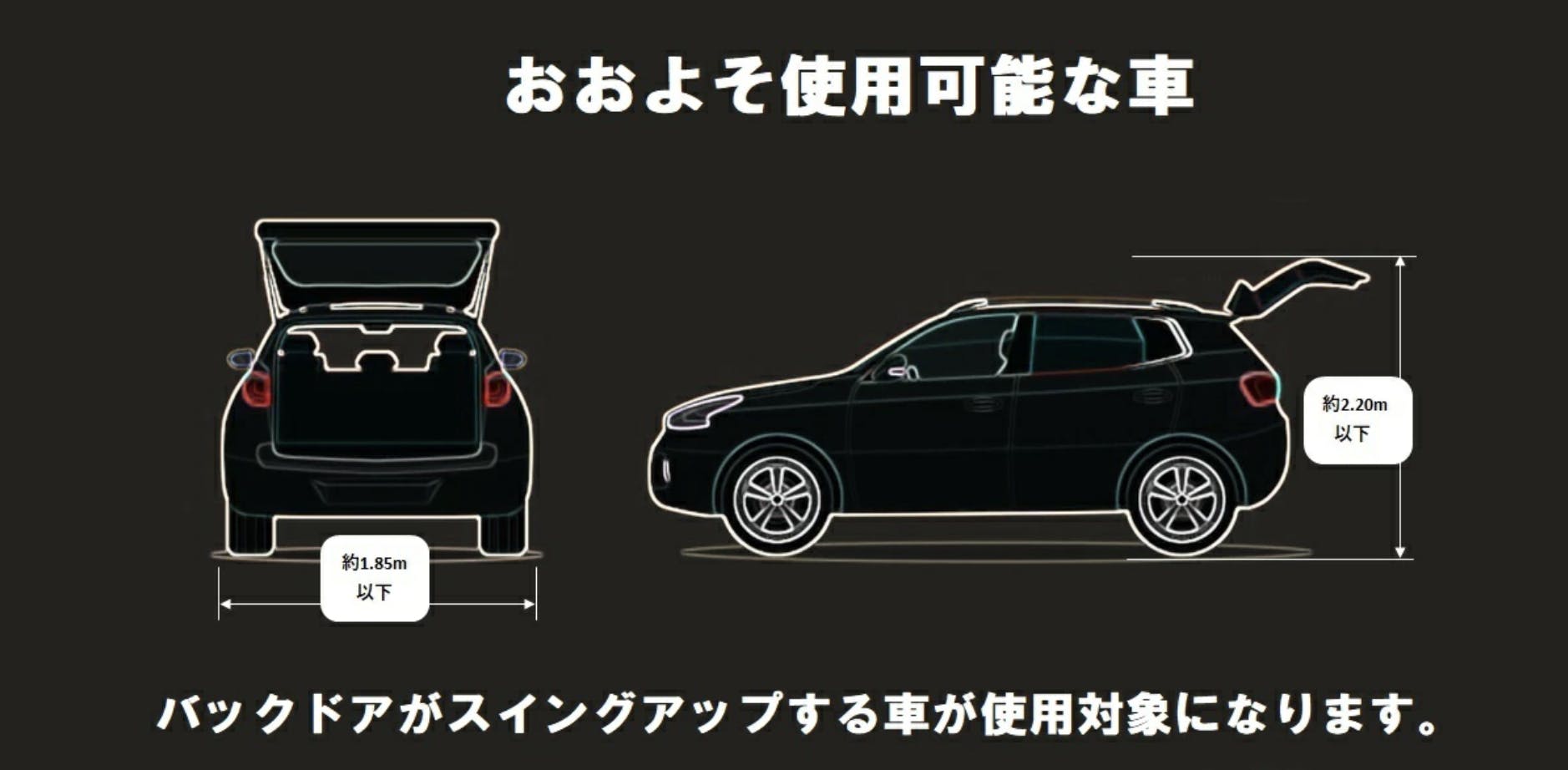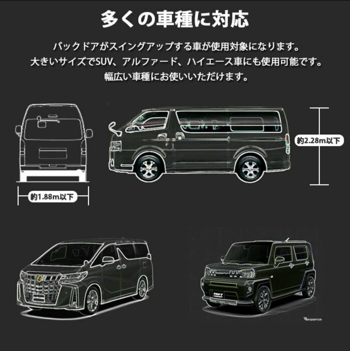 「ウィズカー」はミニバン、SUV、ステーションワゴン等のバックドアがスイングアップする車に取り付けることができます。