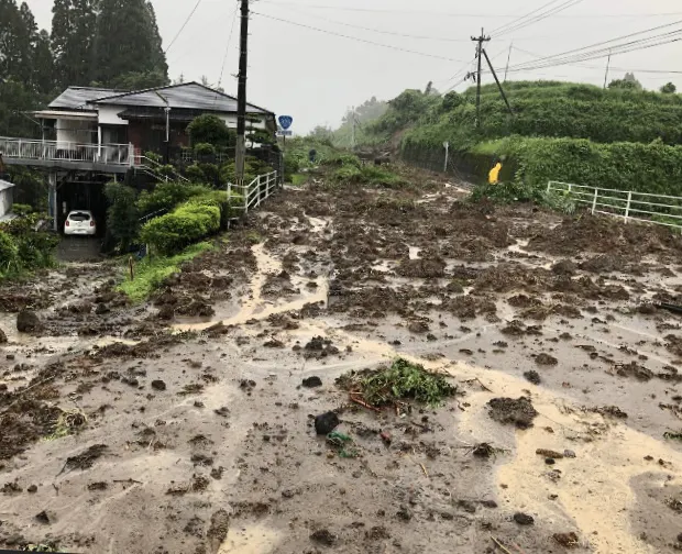 主要道路である国道ですら土砂の被害にあったり、橋が崩落したことにより迂回を余儀なくされている場所があります。宮崎県の中でも熊本県寄りの地域は面積が広くても公共交通機関がバスのみの地域がほとんどな為、車移動が基本となります。道が塞がれるということは移動手段が無くなる・孤立するということなのです。これらの道路だけでなく住宅地の道路、町役場の道路も土砂で通れなくなったり、地盤が緩みコンクリートが陥没したりしてしまってる場所もありました。