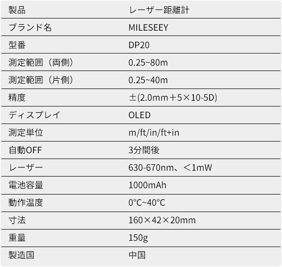 レーザー距離計「MILESEEY DP20」(マイルシー)の特徴: