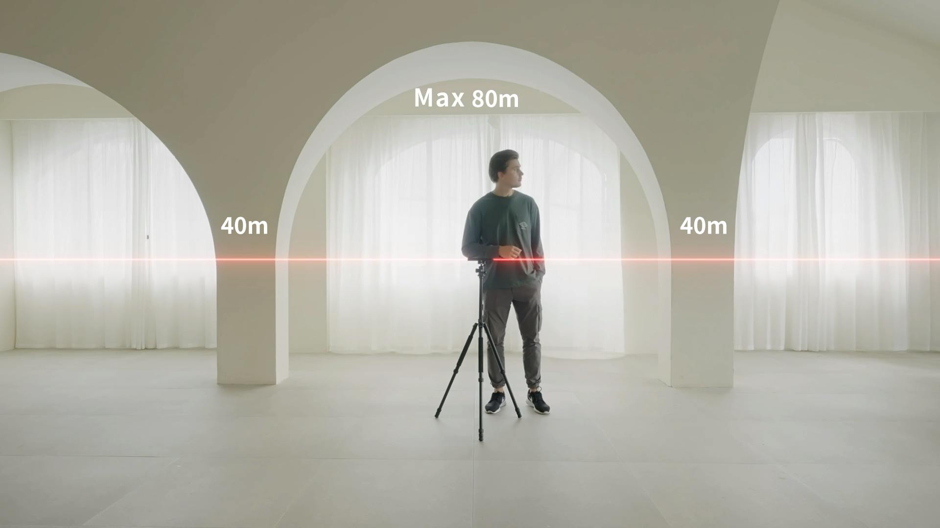 片側測定では最大40メートルまで測定可能、両側測定では倍の最大80メートルまで測定することが可能です。
