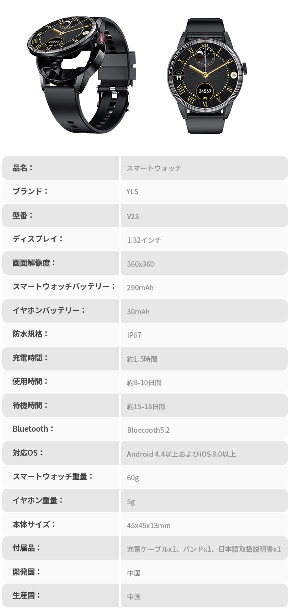 「V23」は、1.32インチの画面と洗練されたラウンド型本体を組み合わせた高級感溢れるデザインです。また360*360ピクセルの高解像度画面を採用することで、鮮明な画面をお楽しみいただけます。