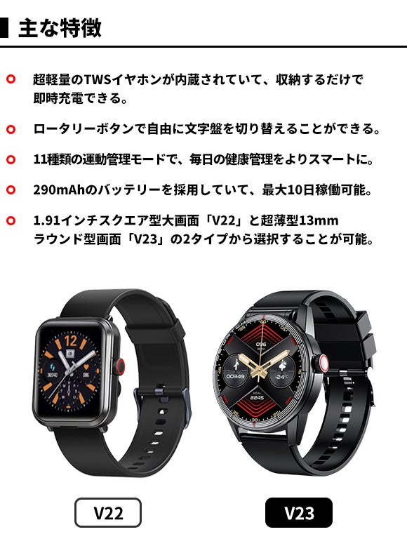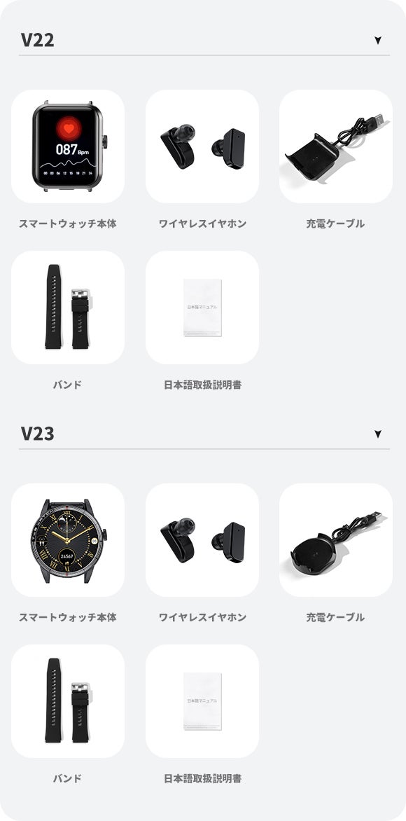 *本プロジェクトでは【V22】【V23】をお選びいただけます。(※スマートウォッチ「V22」「V23」は医療機器ではありません。)