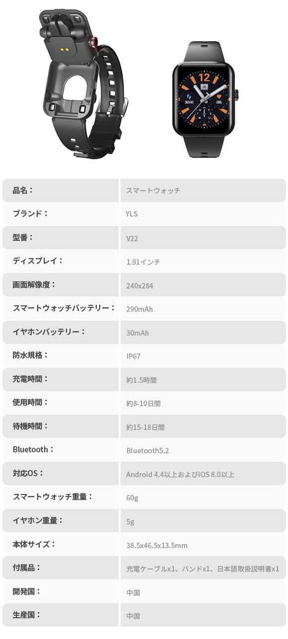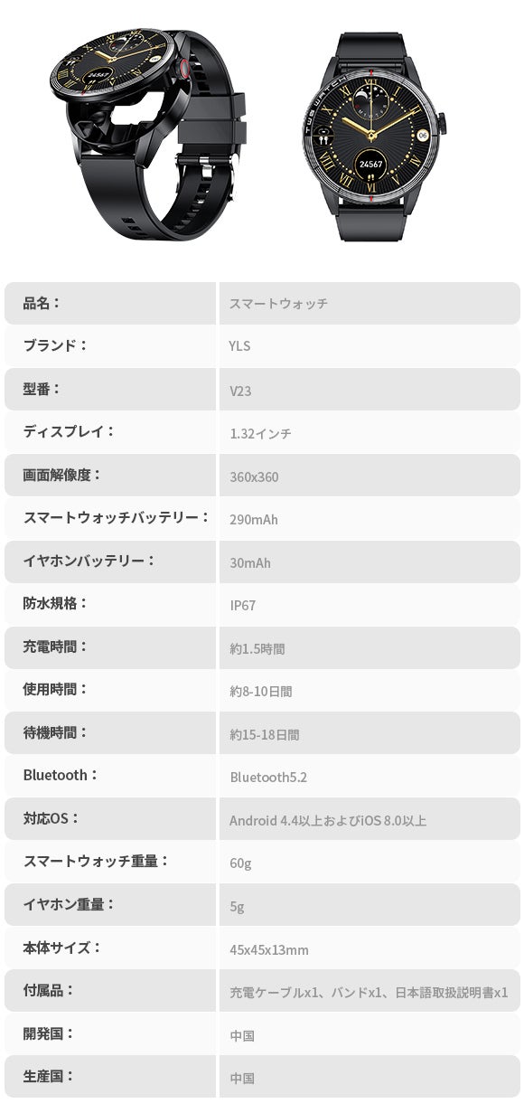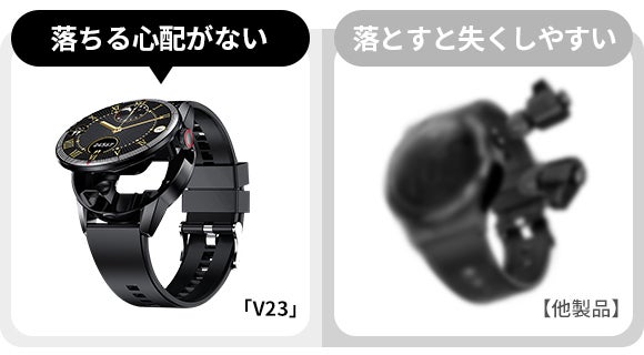 「V22」「V23」は13.5mm/13mmの超薄型設計を実現しており、イヤホンを内蔵した状態での実測重量はわずか65gです。持ち運ぶ時や装着時も負担になりません。イヤホンを外したくなったら、手元のスマートウォッチへすぐに収納することができます。
