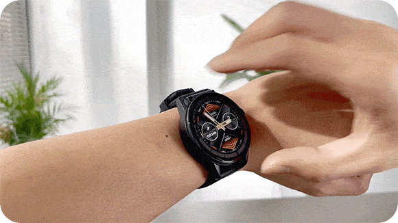 画面をタッチしなくても、腕を傾ければ自動で画面が点灯します。
