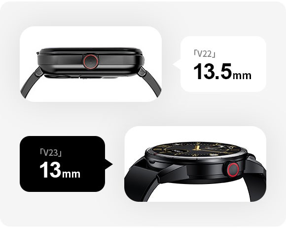 「V23」は、1.32インチの画面と洗練されたラウンド型本体を組み合わせた高級感溢れるデザインです。また360*360ピクセルの高解像度画面を採用することで、鮮明な画面をお楽しみいただけます。