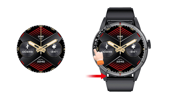 従来のイヤホン内蔵スマートウォッチの難点を解決して、側面のロータリーボタンによって自由に文字盤を切り替えることを実現しました。