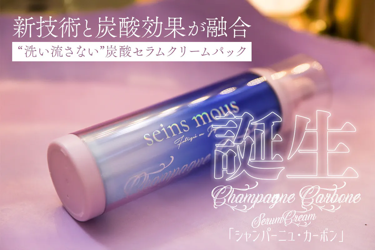 我々コスメメゾン・セインムーの6年の歳月をかけてたどり着いた、新発想の炭酸化粧品「シャンパーニュ・カーボン」。