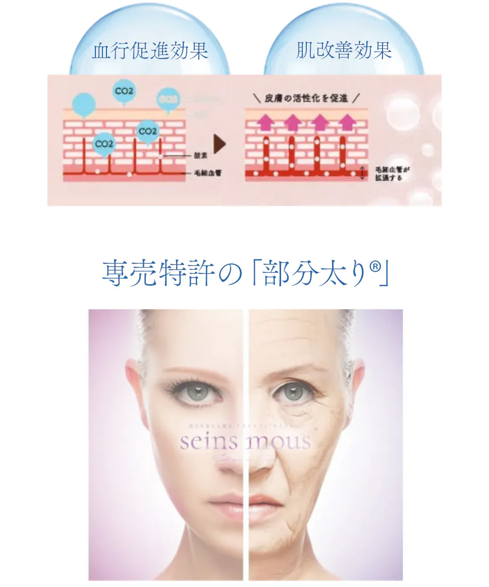ヨーロッパでは古くから炭酸が医療の現場で使われ、血管を拡張させる効果によって心臓病や動脈硬化、高血圧の治療に役立っています。また、スキンケでも炭酸ぱくを行うことで毛細血管が拡張し、血流が改善され、肌のターンオーバーが促進されるため、肌の改善が期待できます。