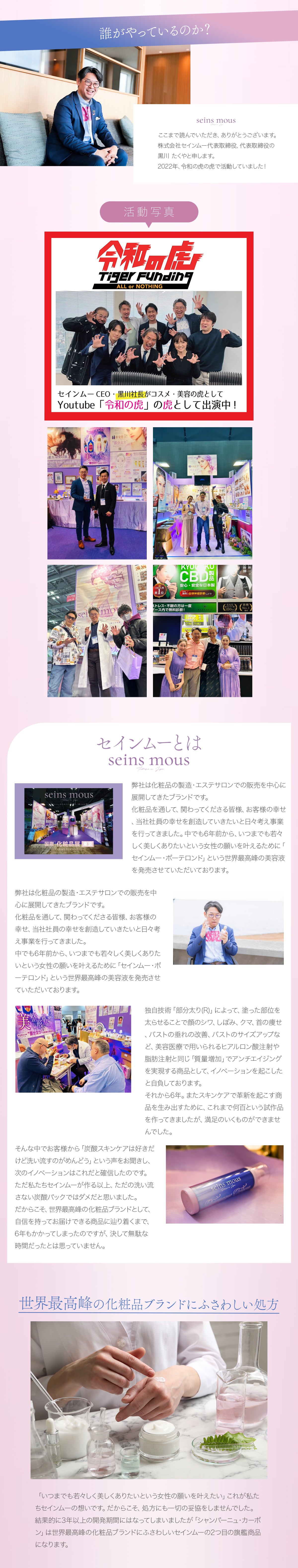 また「いつまでも若々しく美しくありたい」という女性の願いを叶えるべく、感動レベルの製品を開発して多くの人に届けていくために活用させていただきます。