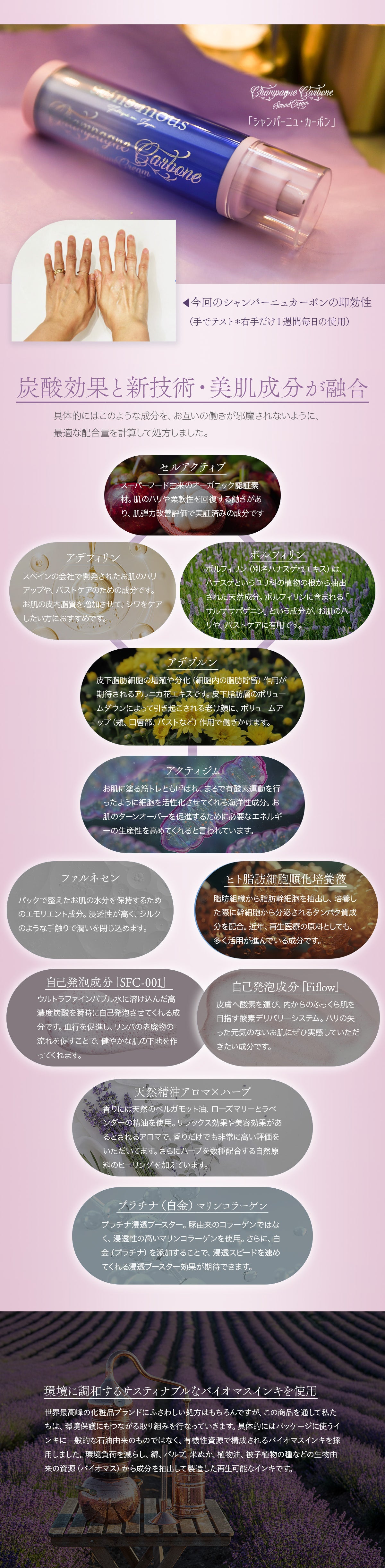 我々コスメメゾン・セインムーの6年の歳月をかけてたどり着いた、新発想の炭酸化粧品「シャンパーニュ・カーボン」。