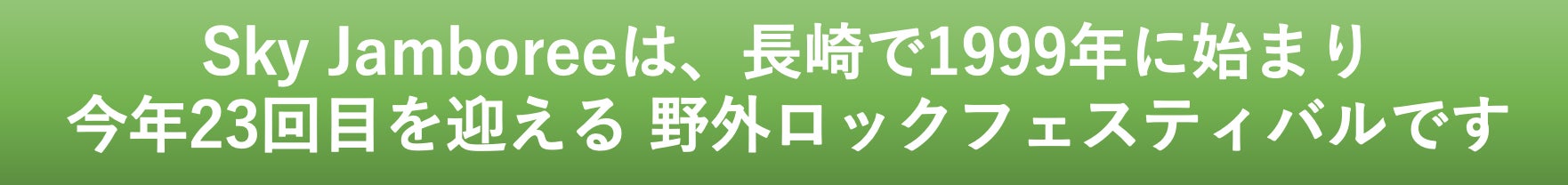 Sky Jamboreeは、森と海と空に囲まれた最高のロケーション・稲佐山公園を会場に、1ステージにこだわり、自由な鑑賞スタイルと会場の一体感は“野外のライブハウス”と称され、出演バンドとオーディエンスに愛される野外ロックフェスティバルです。開催当初からサブテーマに~one pray in nagasaki〜を掲げ、8月の長崎で開催する意味、役割を受け止め、またFM放送局が主催するフェスとして、平和を、音楽を、心から愛するフェスであり続けることを第一に考えています。