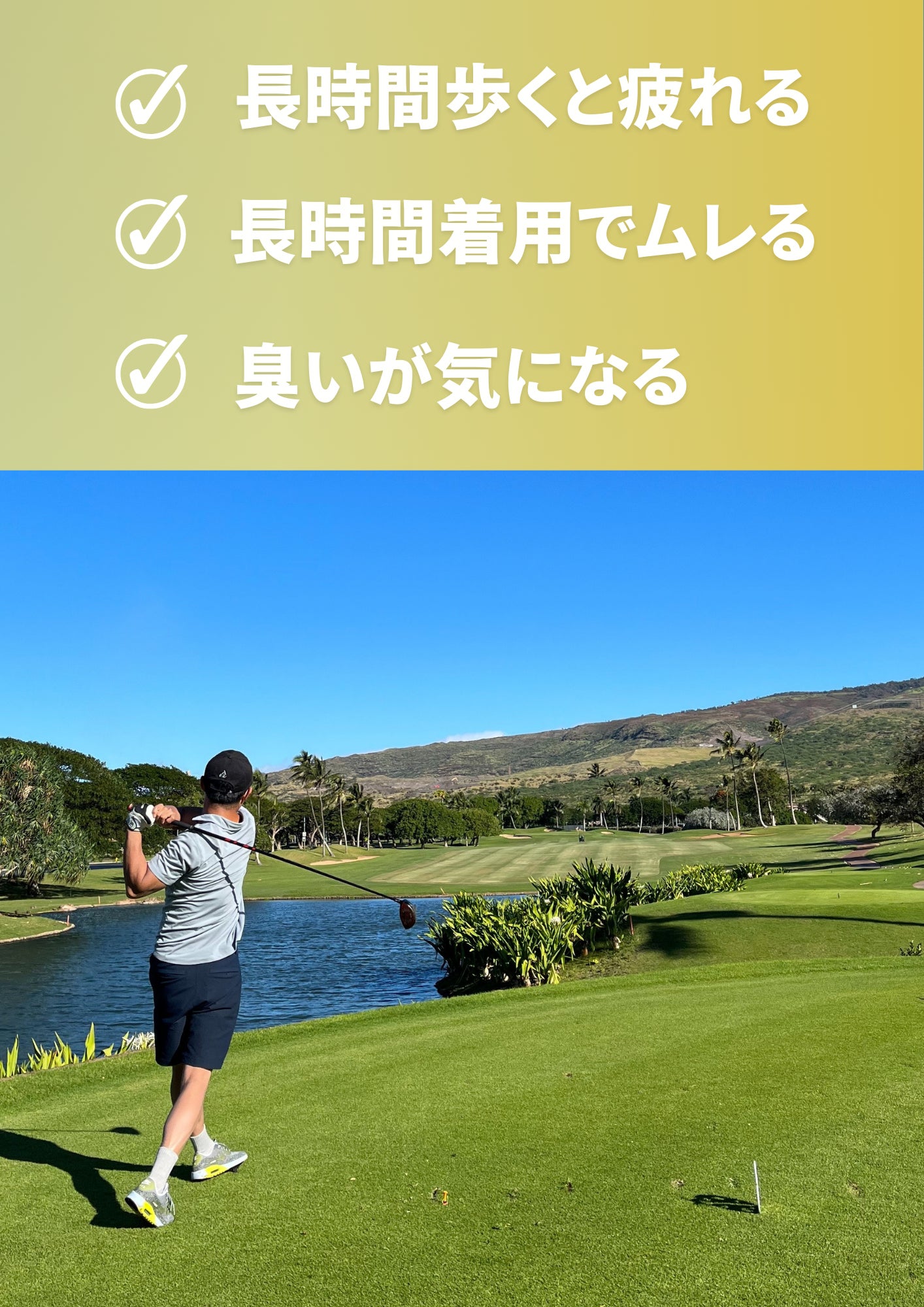 現在、悩まれている長丁場のゴルフで足がムレてしまうことを解決することができます。