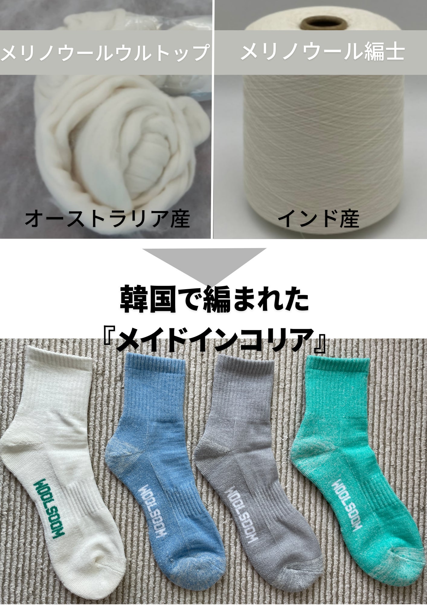 韓国特許第10-1190077号の編織方法は、北米・北欧で製作するメリノウールアウトドアSOCKSの編織方法と韓国の細かい編織技術が組み合わされた韓国特許技術です。