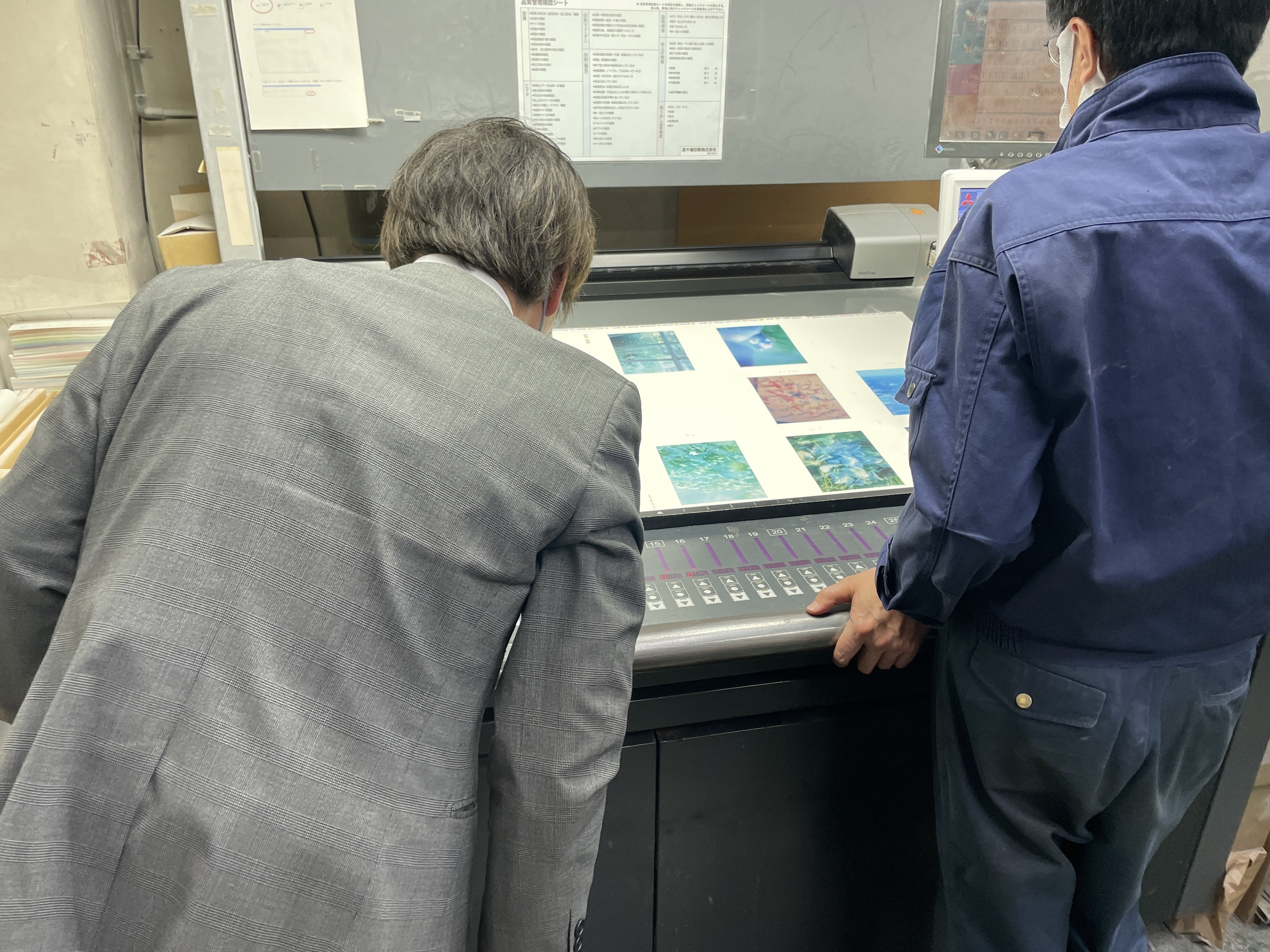 お待たせしております写真集の制作もいよいよ大詰めです。先日は印刷、製本全般を取り仕切ってもらっている歩プロセスの中村さんと一緒に印刷の立ち会いに行ってきました。